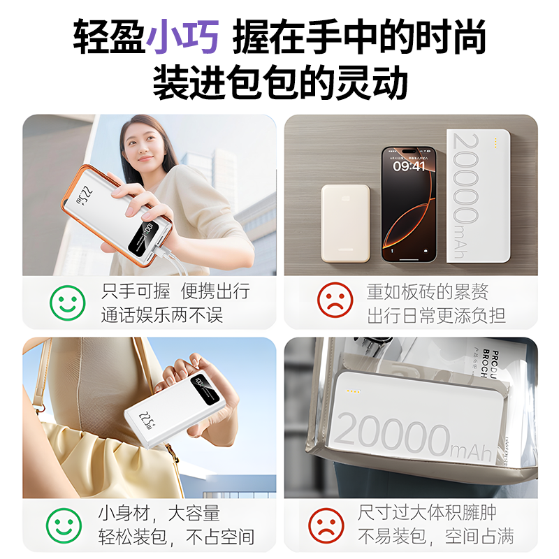 【新国标3C认证可上飞机】2026新款超级快充3万毫安充电宝20000mAh超薄大容量小巧便携移动电源适用华为苹果