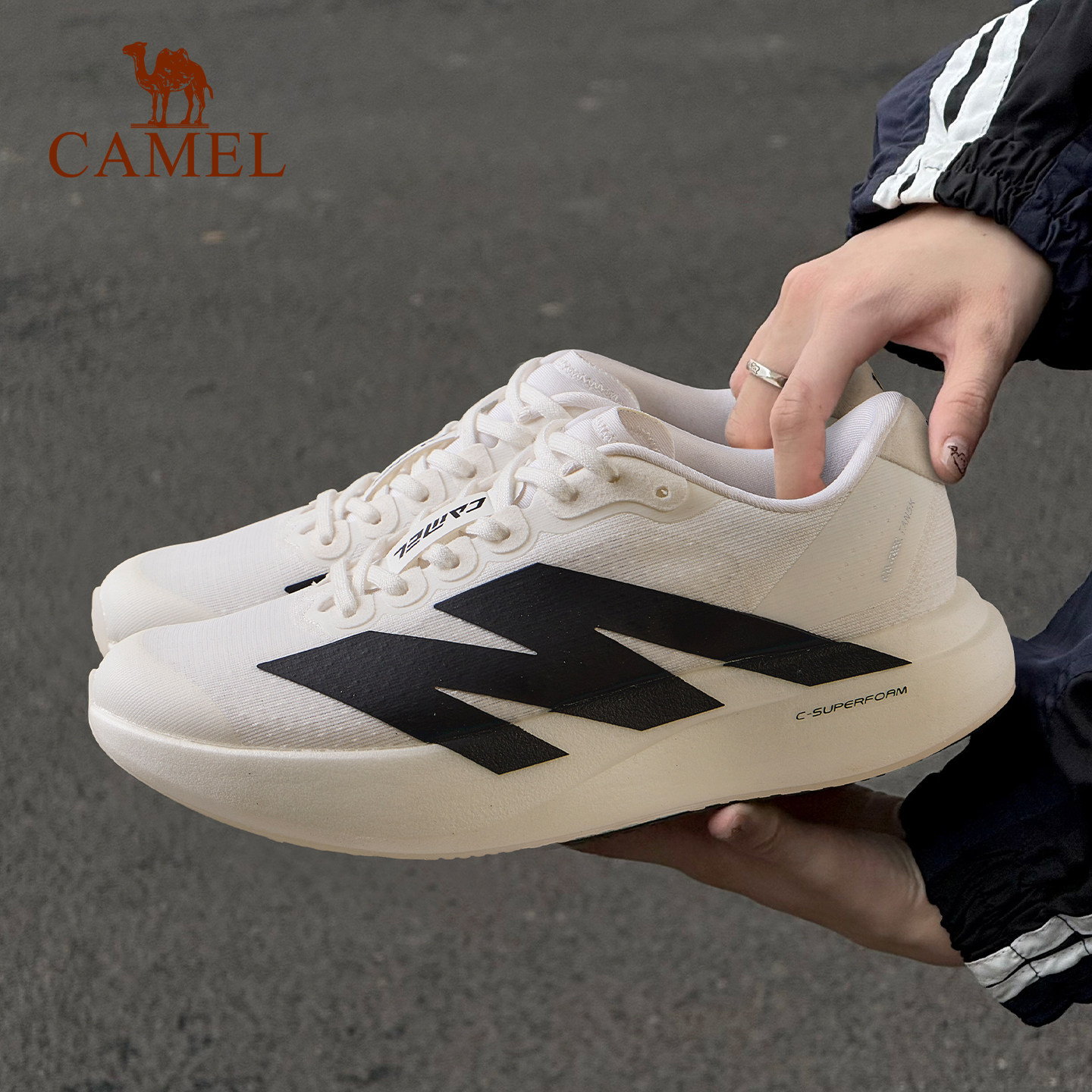 骆驼碳5K户外厚底碳板慢跑鞋女网面透气缓震跑鞋轻量休闲运动鞋