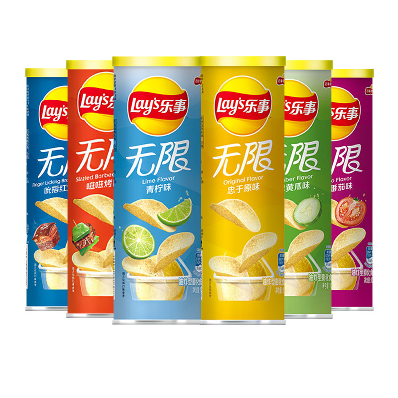 乐无限薯片104g罐装黄瓜青柠多口味膨化休闲薄脆解馋分享小零食事