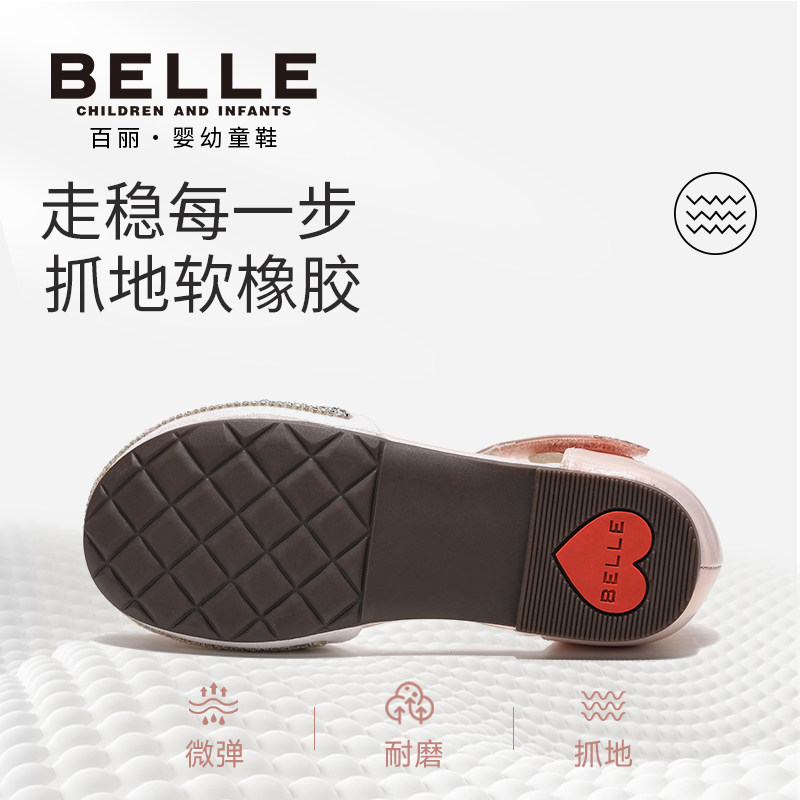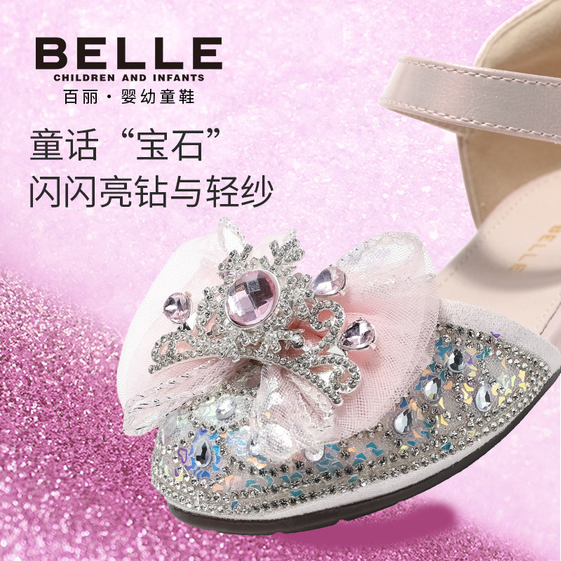 百丽童鞋2026夏季新款女童宝石蝴蝶结公主鞋女宝水晶鞋儿童皮凉鞋
