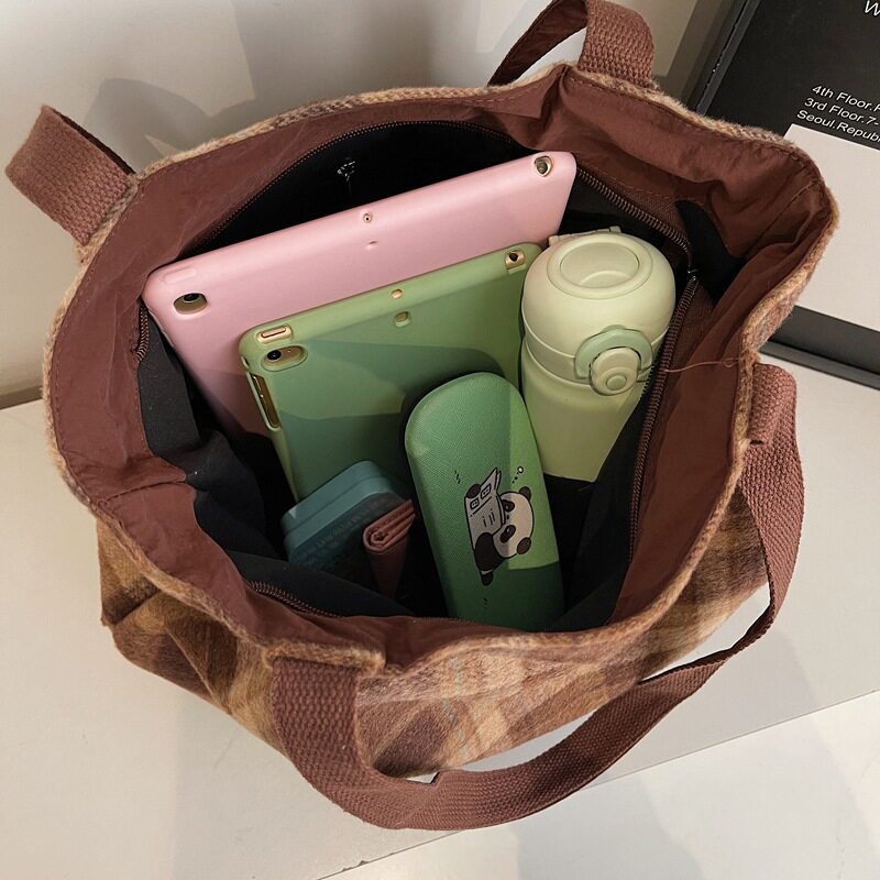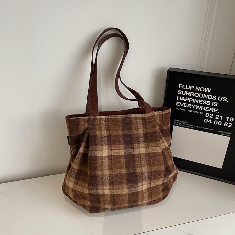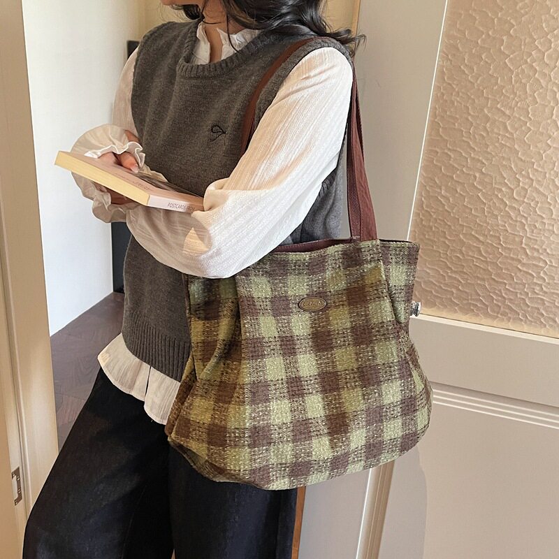 格纹通勤托特包女式2025新款流行日常百搭单肩包小众洋气手提包
