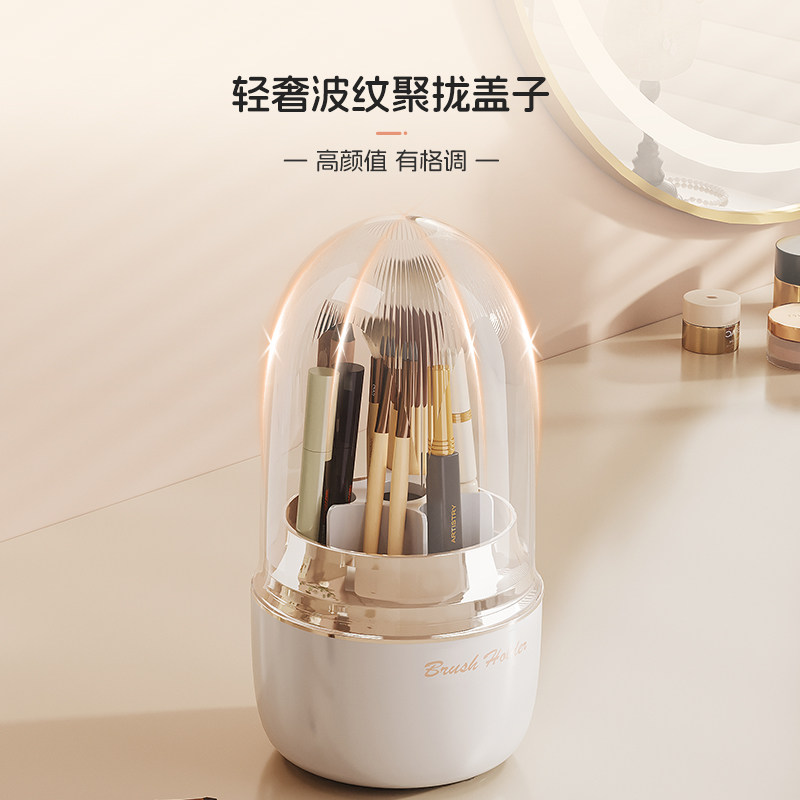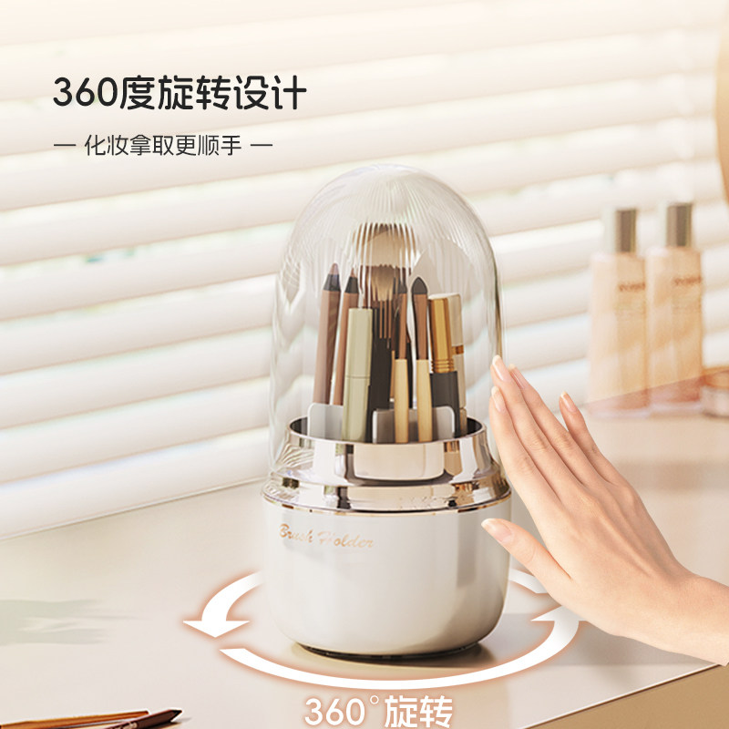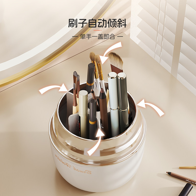 旋转化妆刷收纳筒防尘轻奢粉刷化妆品收纳盒桌面眉笔眼影刷子桶