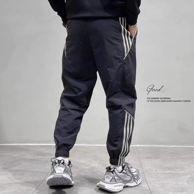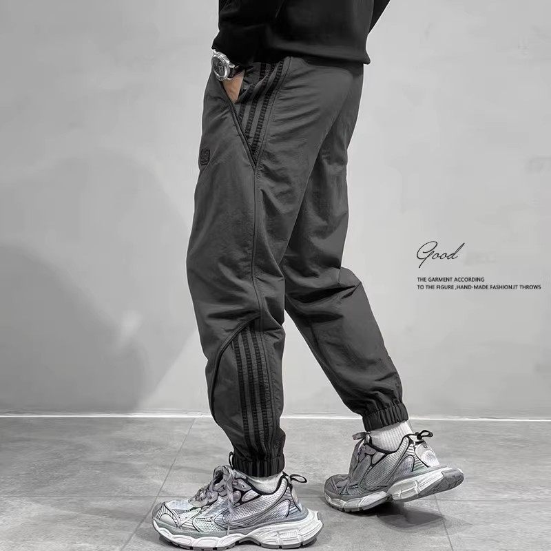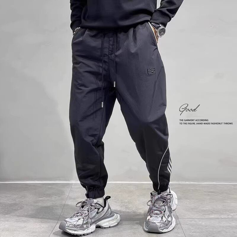 香港夏运动裤男宽松加肥工装束脚冲锋九分休闲裤冰丝速干薄款