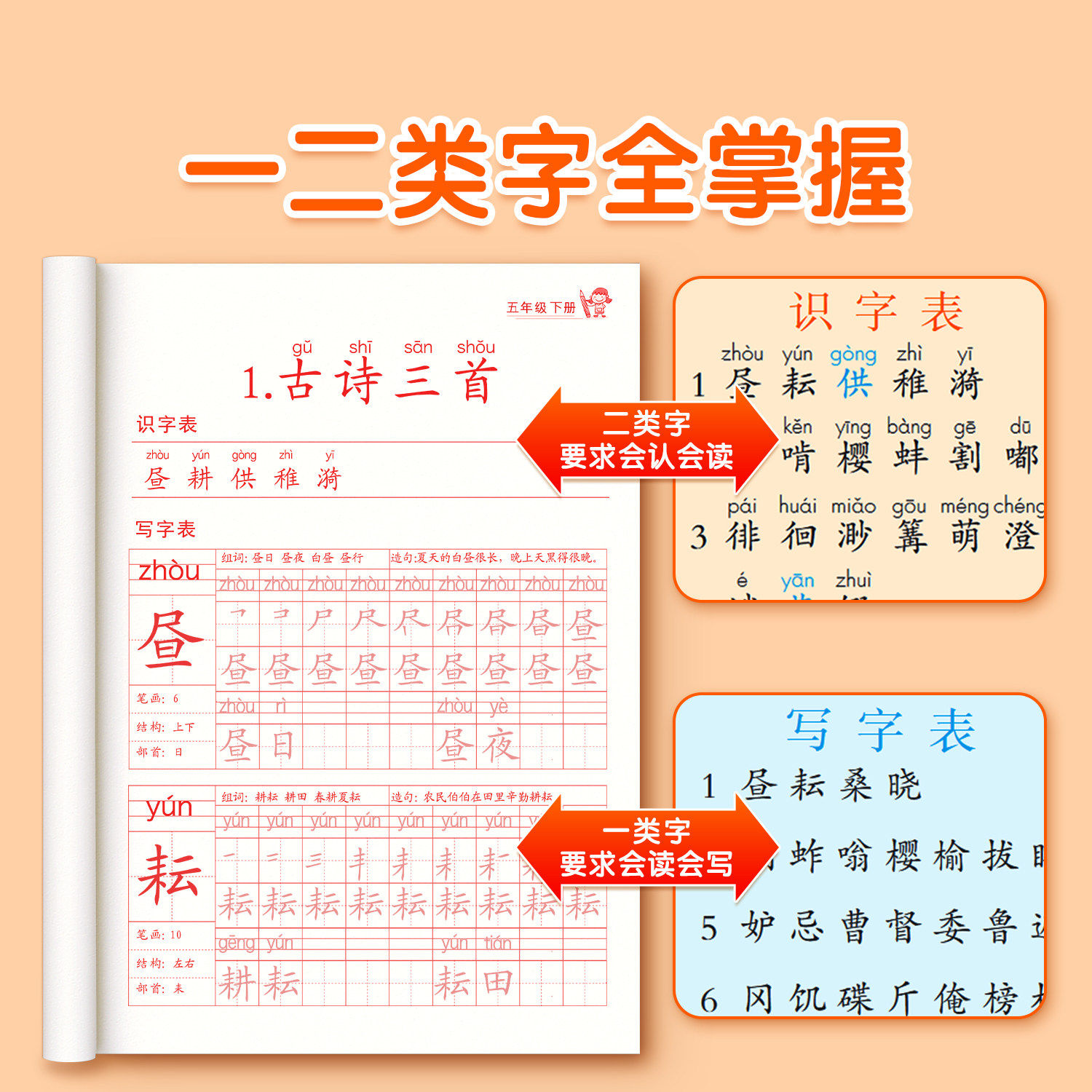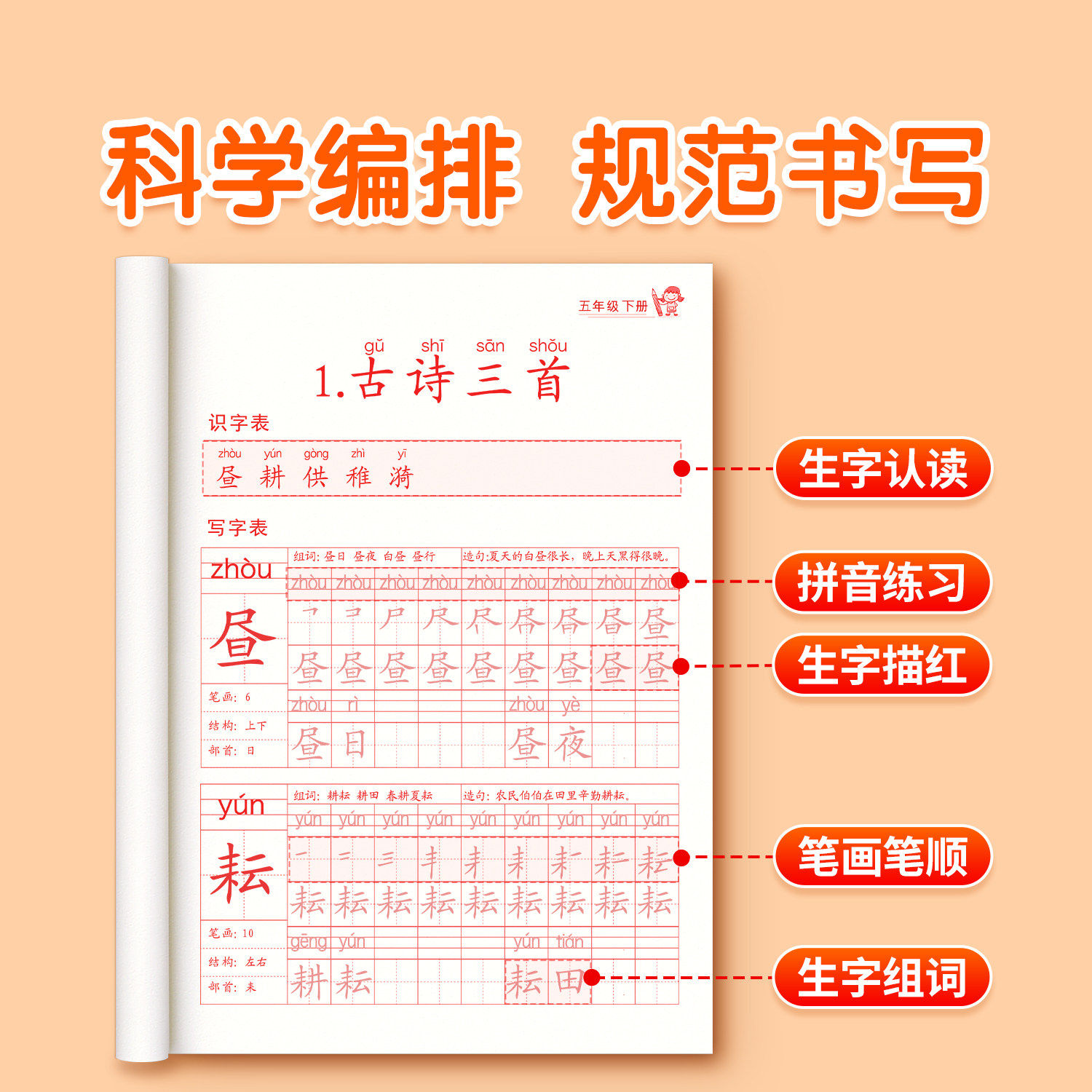2026新版五年级下册练字帖上册人教版语文同步字帖每日一练小学生专用钢笔练字本练习册写字生字描红类字笔画笔顺硬笔书法楷书拼音