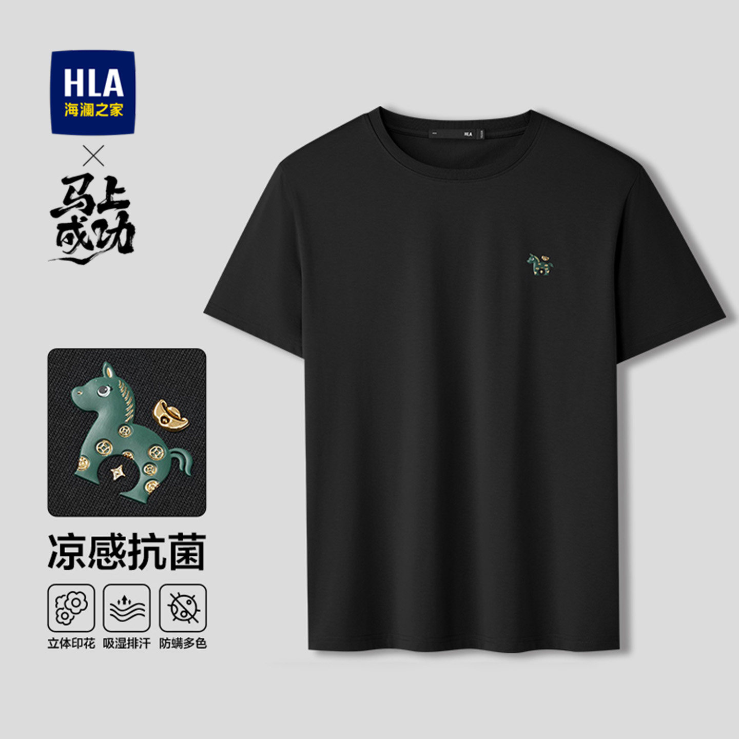 HLA/海澜之家马年贺岁系列短袖T恤2026春夏新款圆领凉感T上衣男