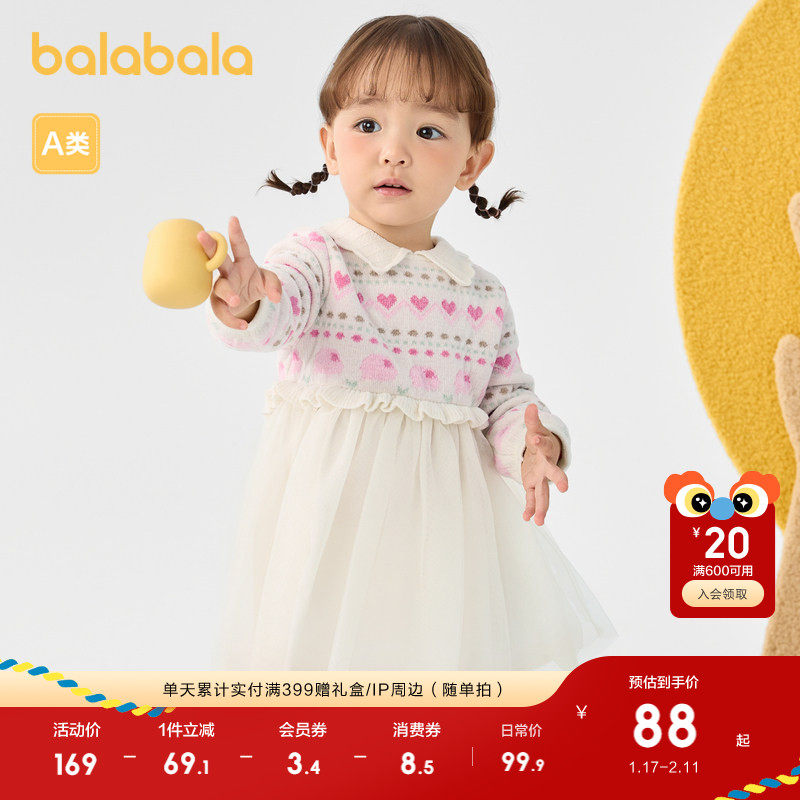 巴拉巴拉balaOne童装女公主裙2025秋冬新款儿童连衣裙针织网纱裙