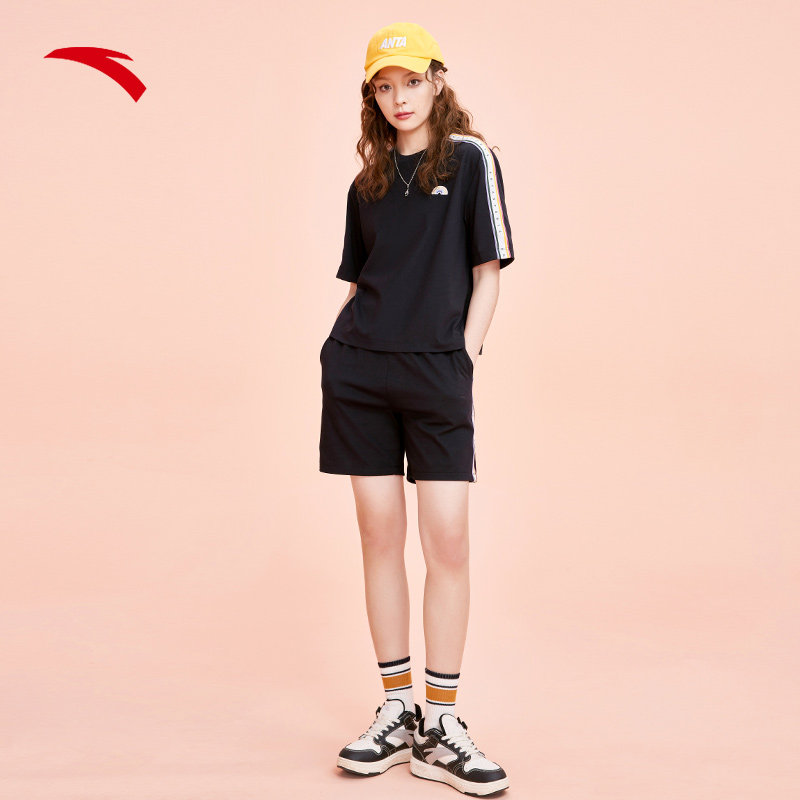 安踏彩虹运动套装女2026春夏季圆领短袖短裤宽松T恤女休闲套装