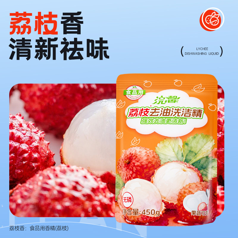 厨房清洁柠檬荔枝洗洁精餐饮去油清洁剂450g洗碗大桶装果蔬餐具