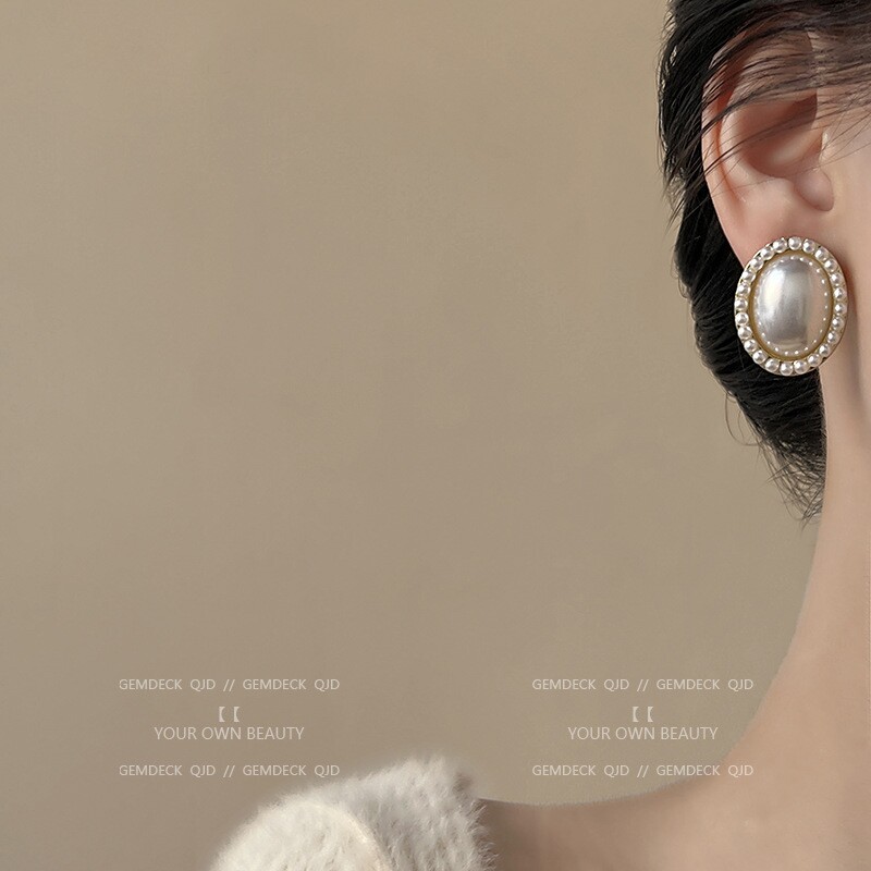 日韩复古港风椭圆珍珠耳环女高级感宫廷风优雅文艺气质耳钉耳饰品