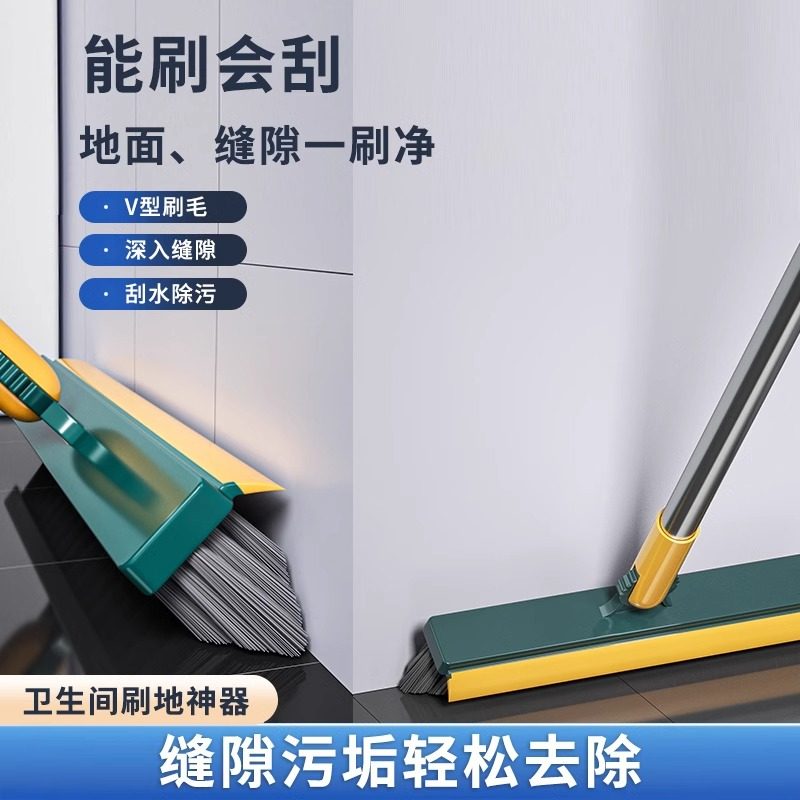 卫生间地板刷浴室清洁刷子长柄硬毛缝隙刷多功能无死角刮水二合一