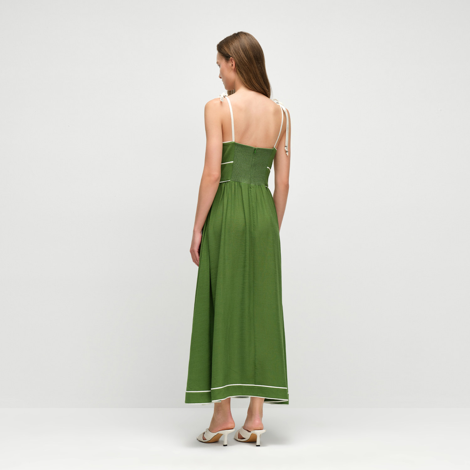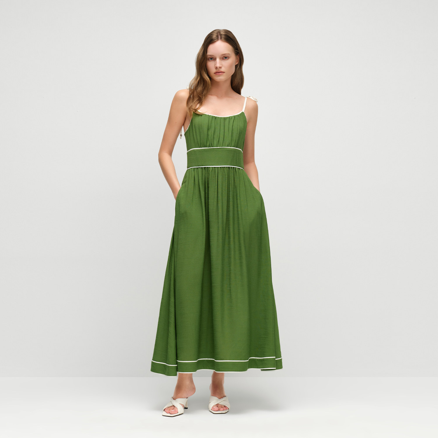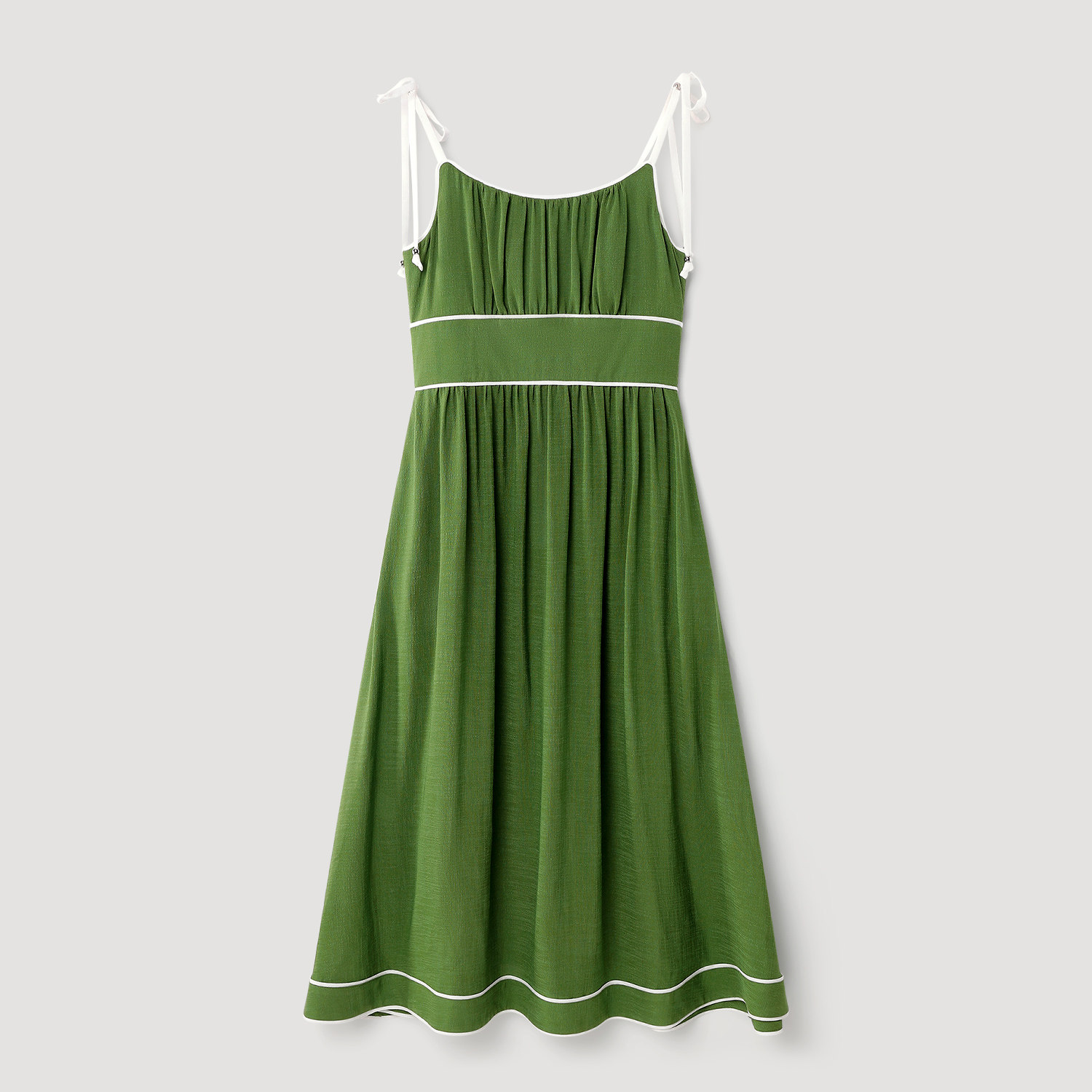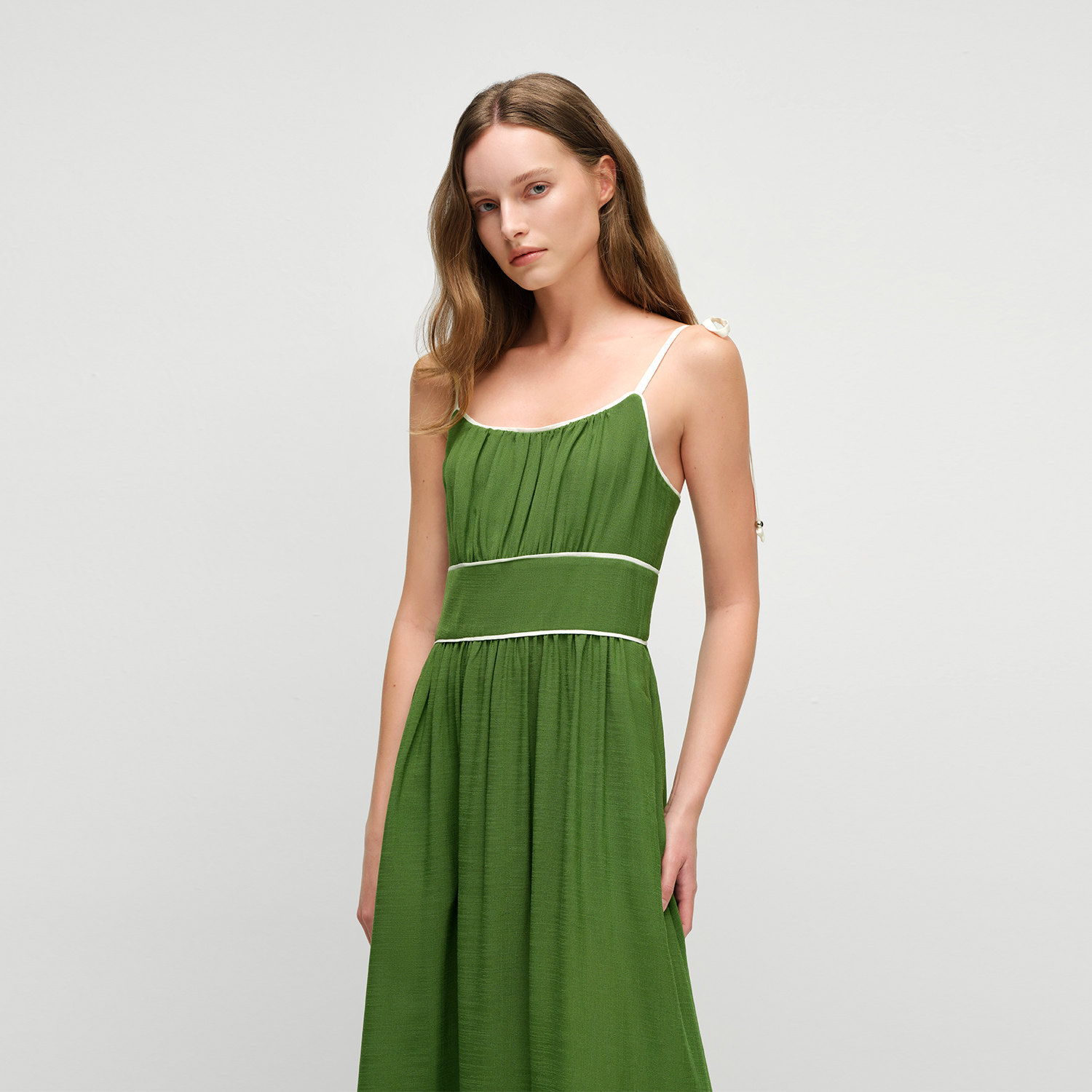 OVV2025春夏新款女装淡人醋酸仿麻面料法式浪漫吊带大裙摆连衣裙
