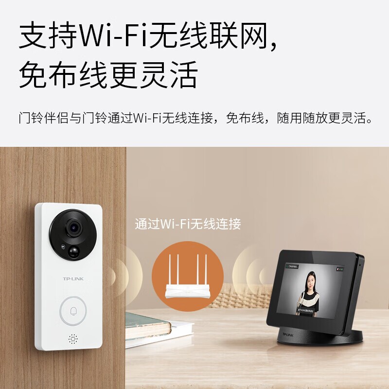 普联TP-LINK无线可视门铃化伴侣DP2C家用监控智能猫眼摄像头电子门镜锂电池版显示屏DB52C/54C/55C/db635a