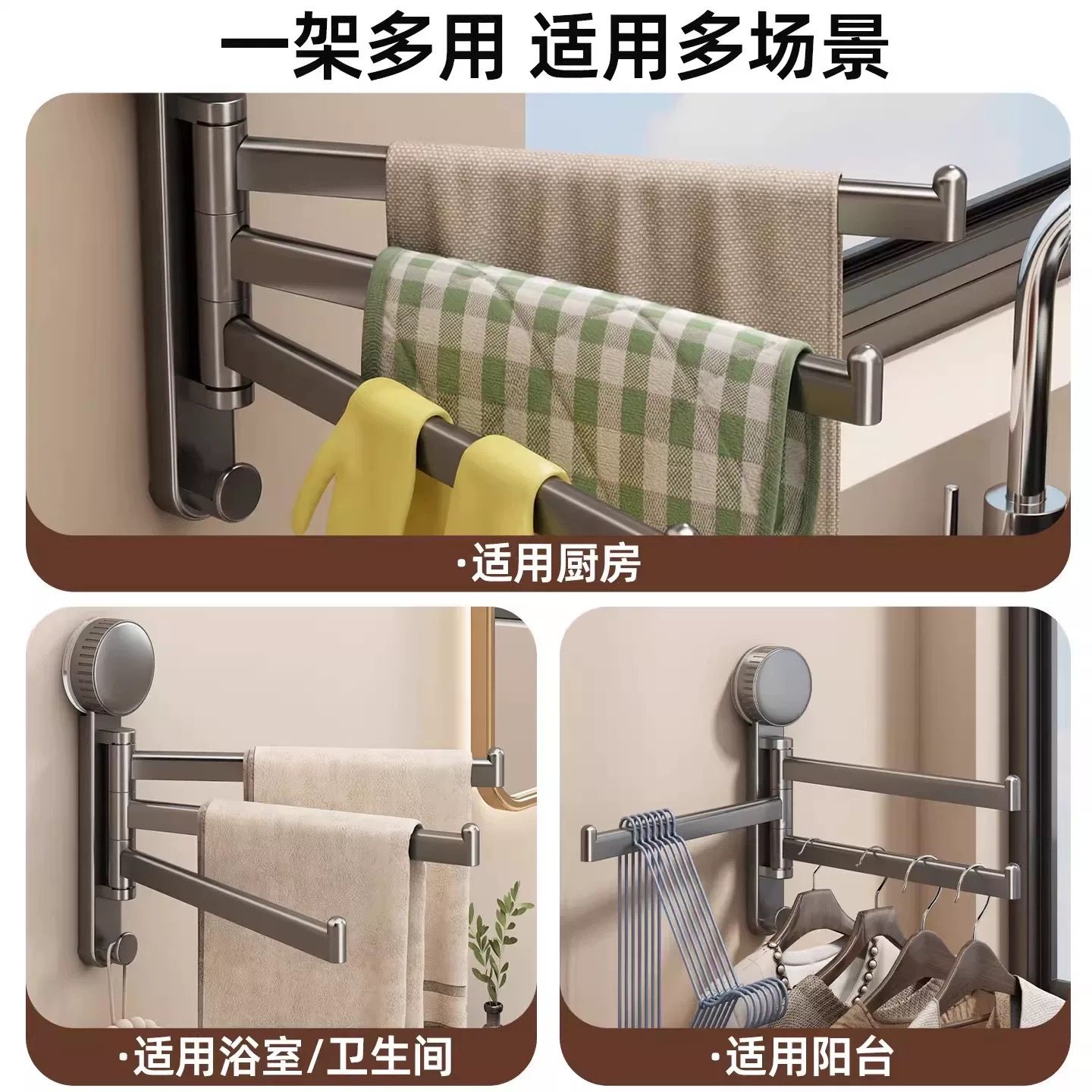 吸盘厨房抹布架置物架洗碗槽窗台多杆可旋转沥水架壁挂上墙毛巾架