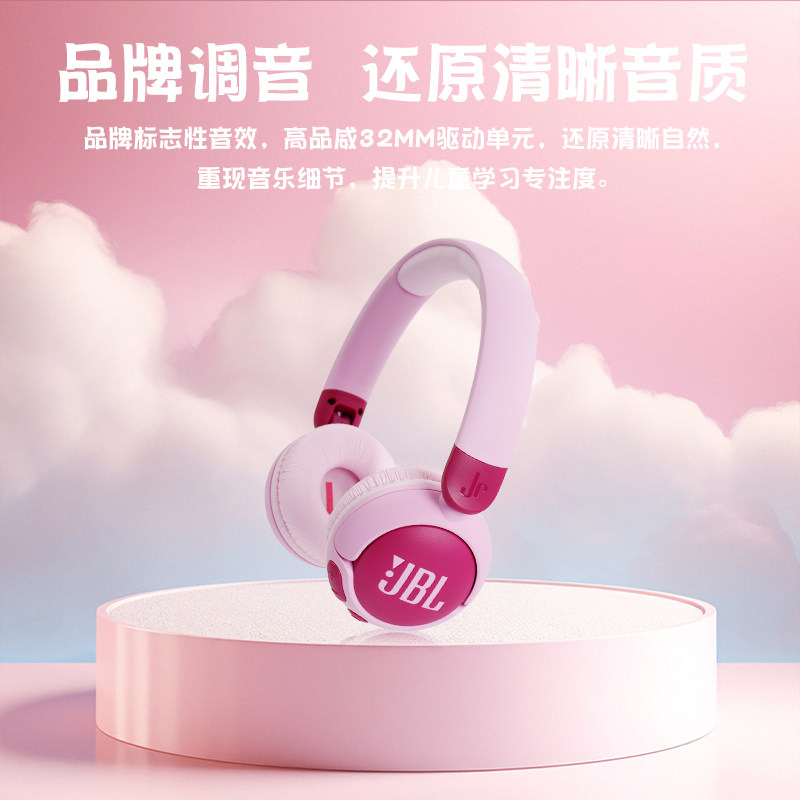 JBL JR320BT 头戴式儿童耳机无线蓝牙青少年学生学习网课通话护耳