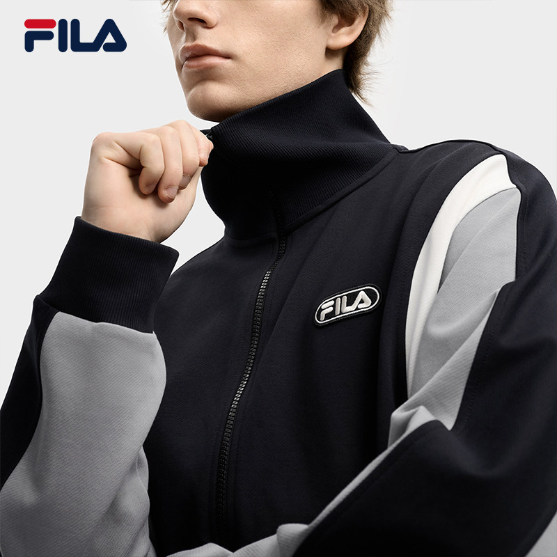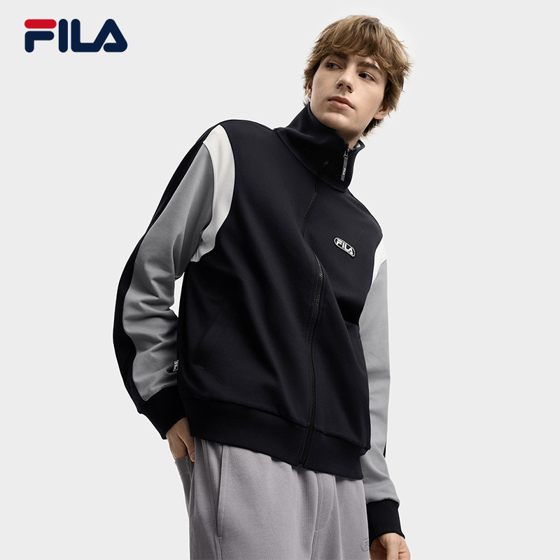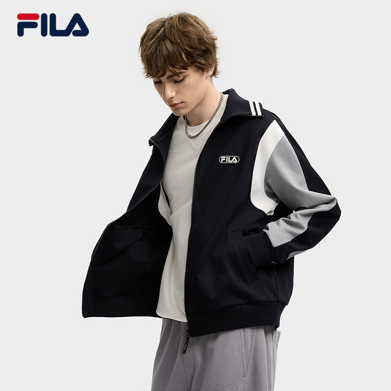 FILA 斐乐官方男士针织长袖外套2025冬新款时尚休闲宽松翻领上衣