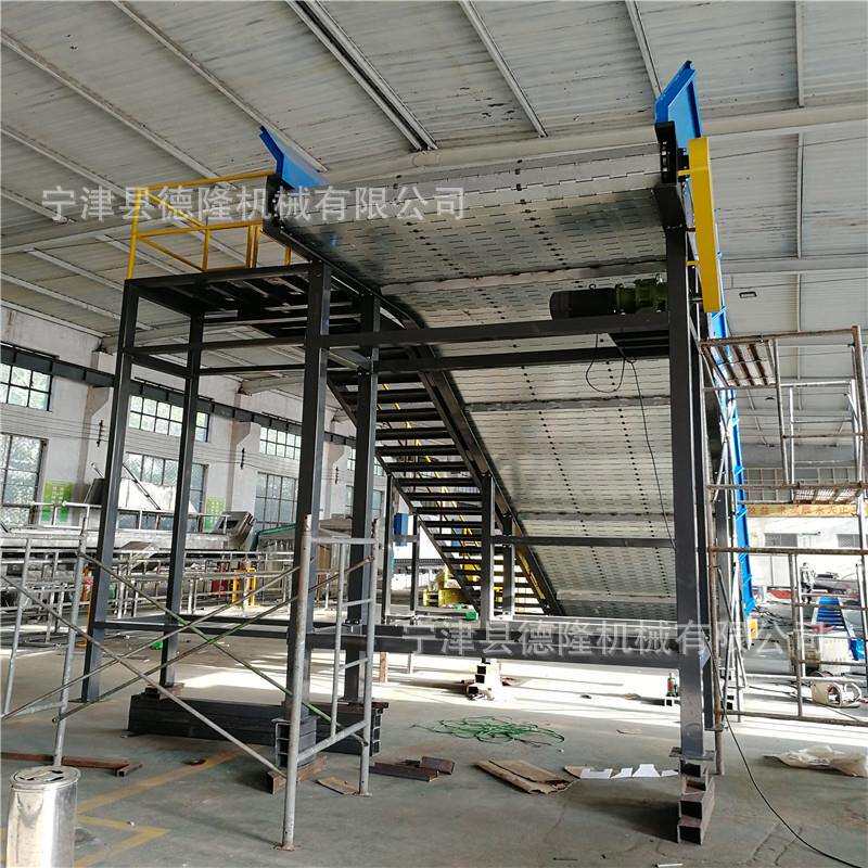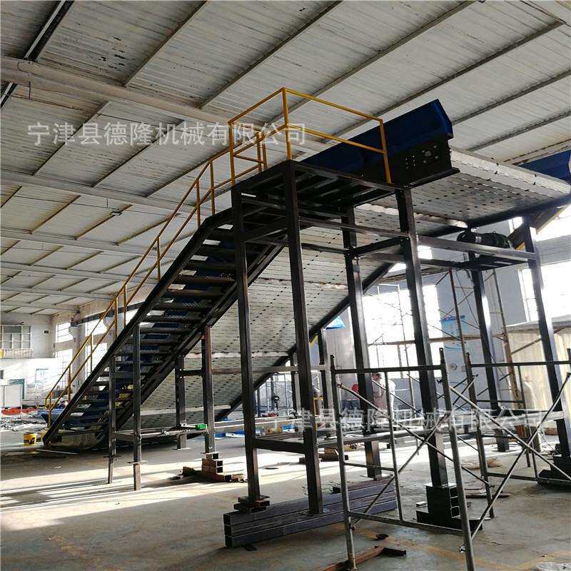 德隆非标加工踏步平台检修配套大链板机重型爬坡镀锌链板输送设备
