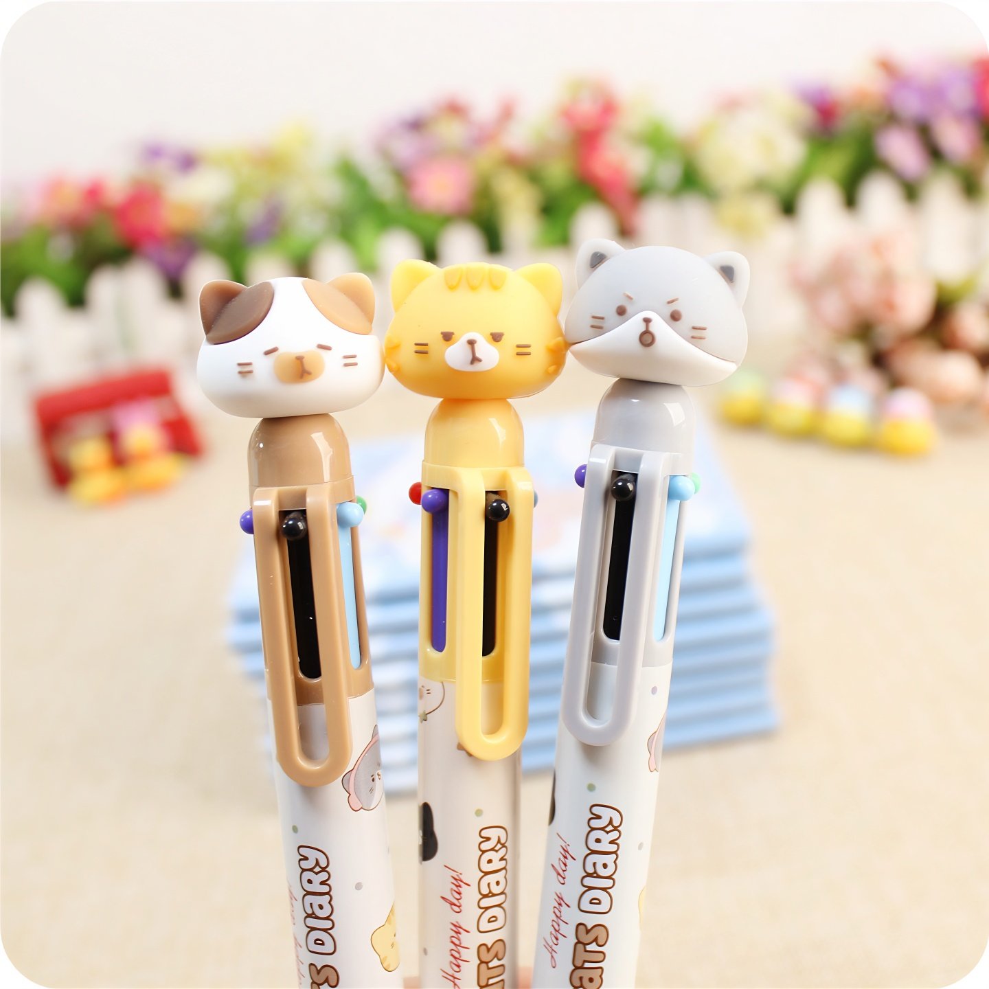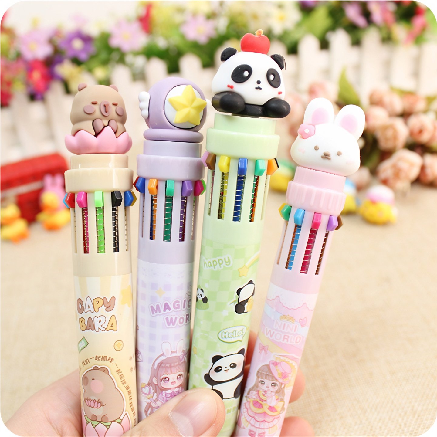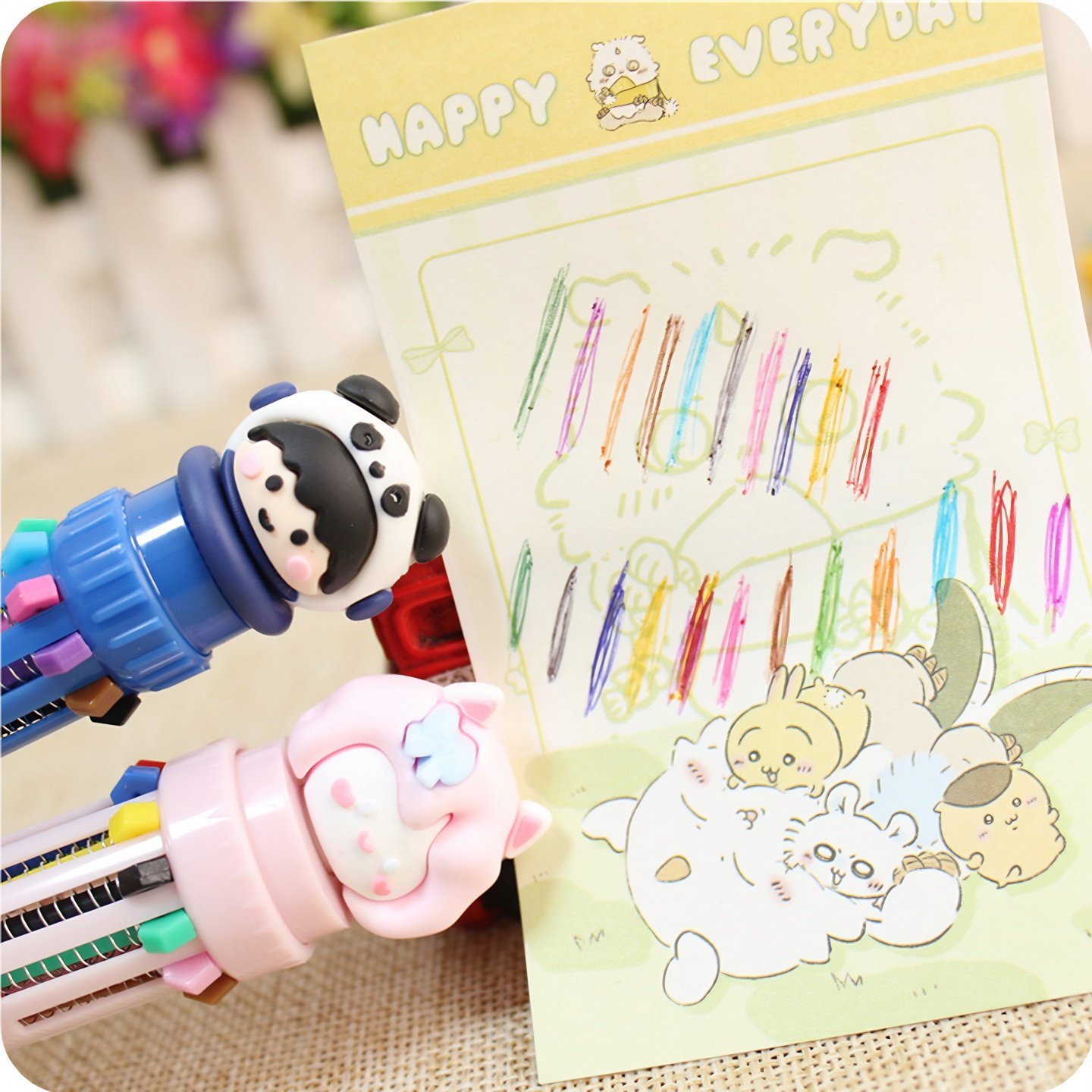 创意卡通多色签字笔可爱按压十色圆珠笔学生奖励实用礼品小奖品