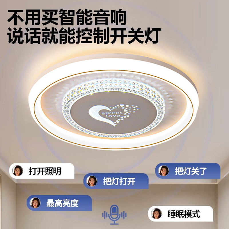 led圆形吸顶灯超亮主灯卧室灯高档餐厅灯护眼灯2025新款水晶语音