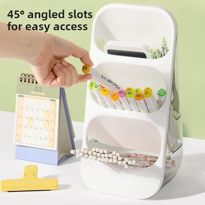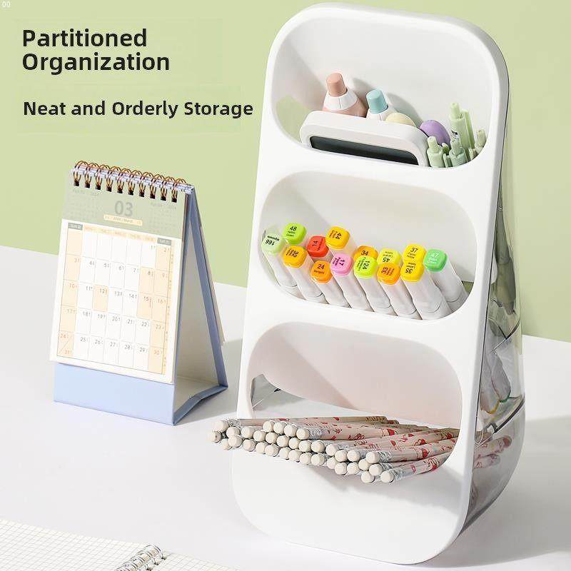 透明斜笔筒大容量学生儿童男孩和女孩桌面收纳盒笔桶儿童学习刷记号笔收纳盒大容量分类文具水彩笔收纳架
