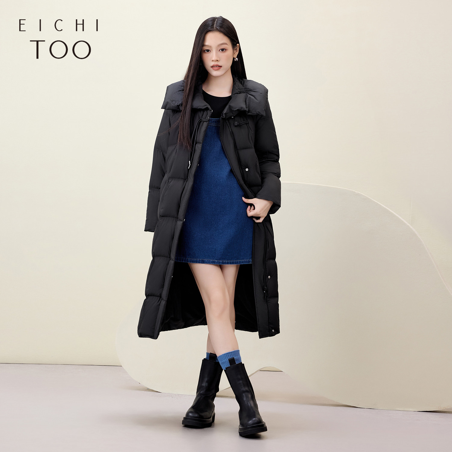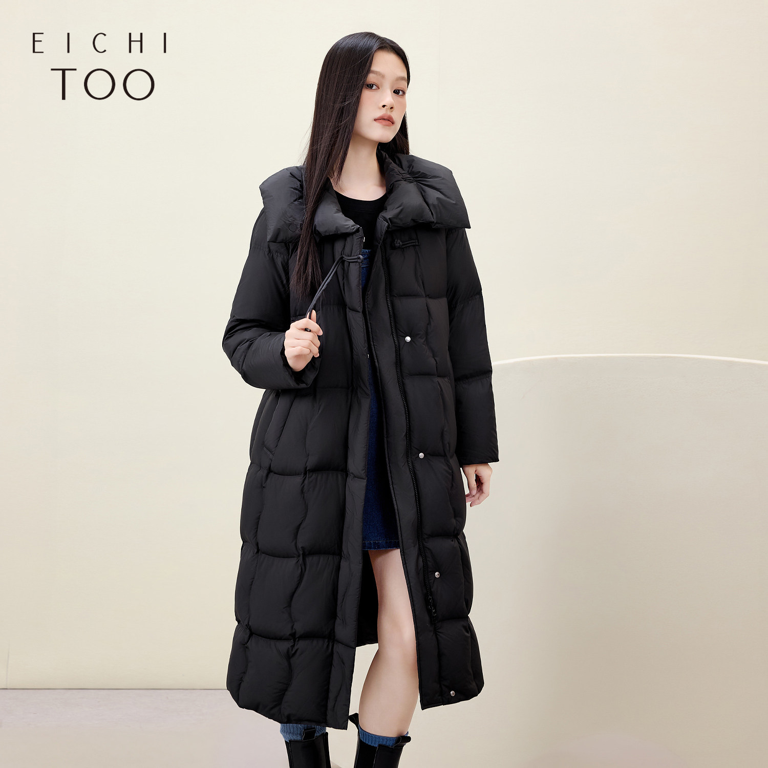 爱居兔新中式翻领羽绒服女冬季新款经典时尚长款保暖外套