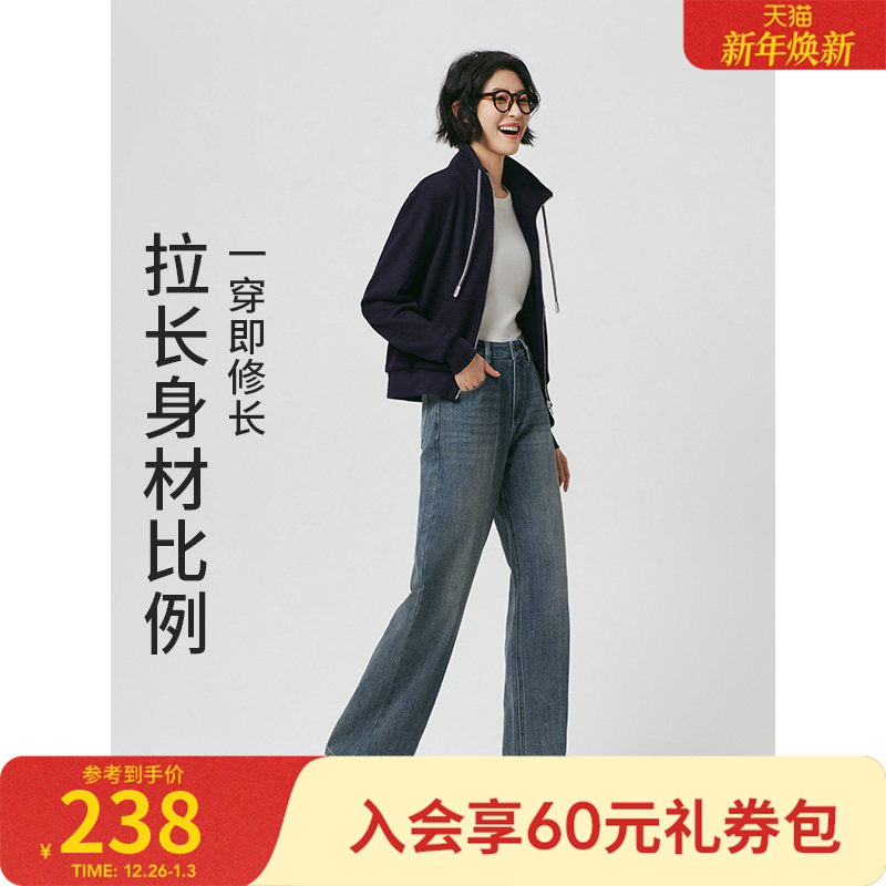 森柔|森马牛仔裤女冬季加绒保暖宽松喇叭裤弹力长裤2025新款港风
