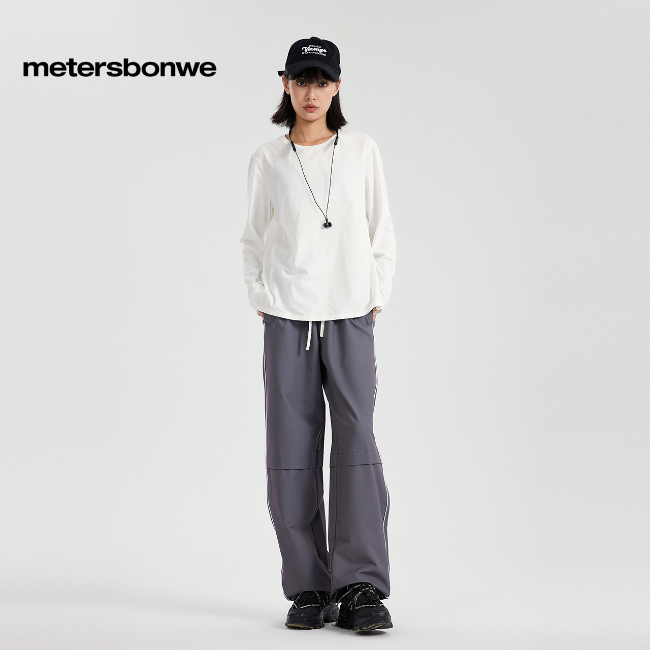 美特斯邦威运动风休闲裤女士秋冬季新款时尚潮流舒适阔腿裤