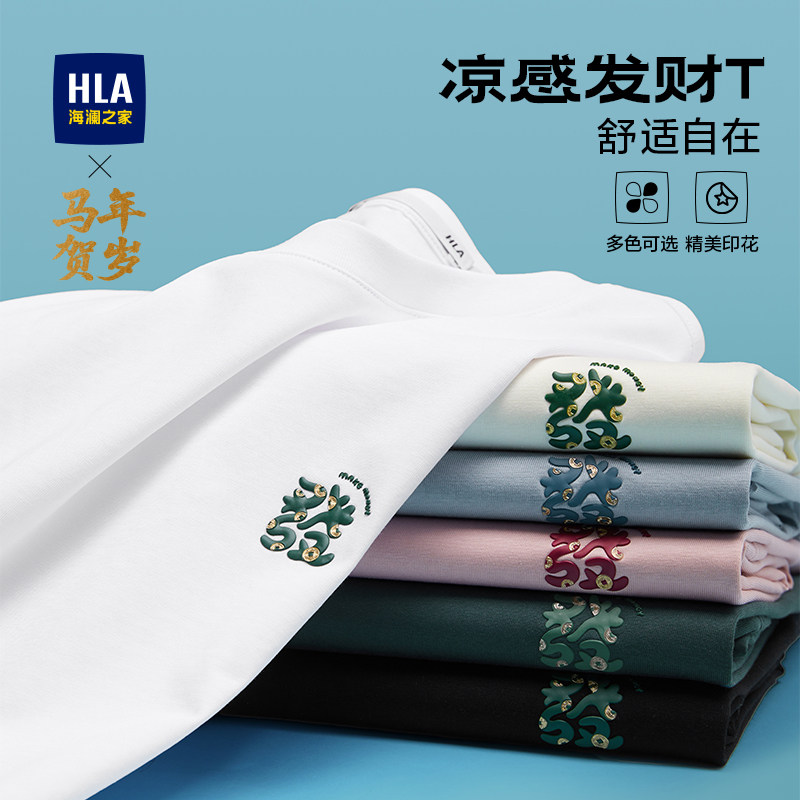 HLA/海澜之家马年贺岁系列短袖T恤2026春夏新凉感大码印花短袖男