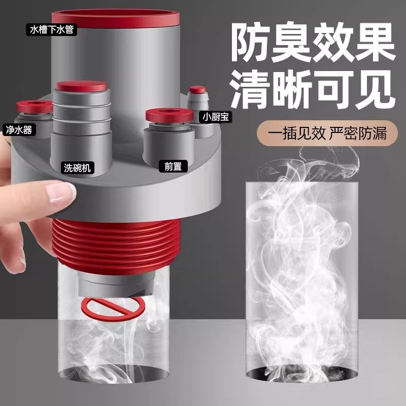 厨房下水管五通洗菜盆洗碗池水槽净水器排水管道防返臭分水器接口