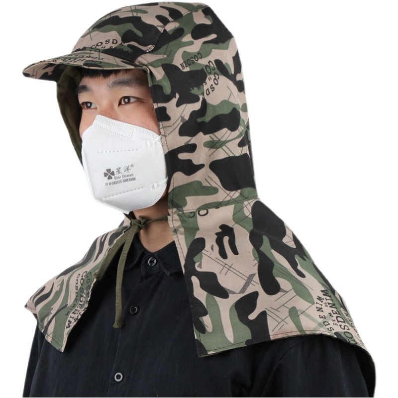 打磨专用防尘帽男多功能迷彩披风帽工业粉尘防风劳保防护披肩帽