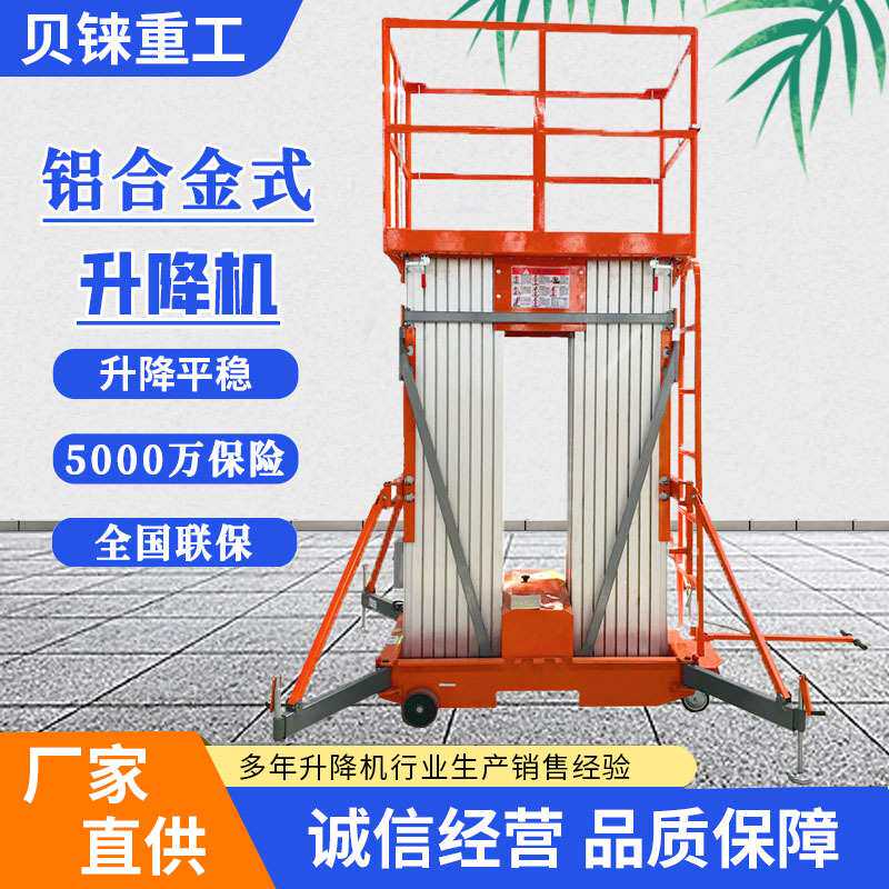 铝合金式高空作业车清洁维修双桅杆轻便小型双柱移动铝合金升降机
