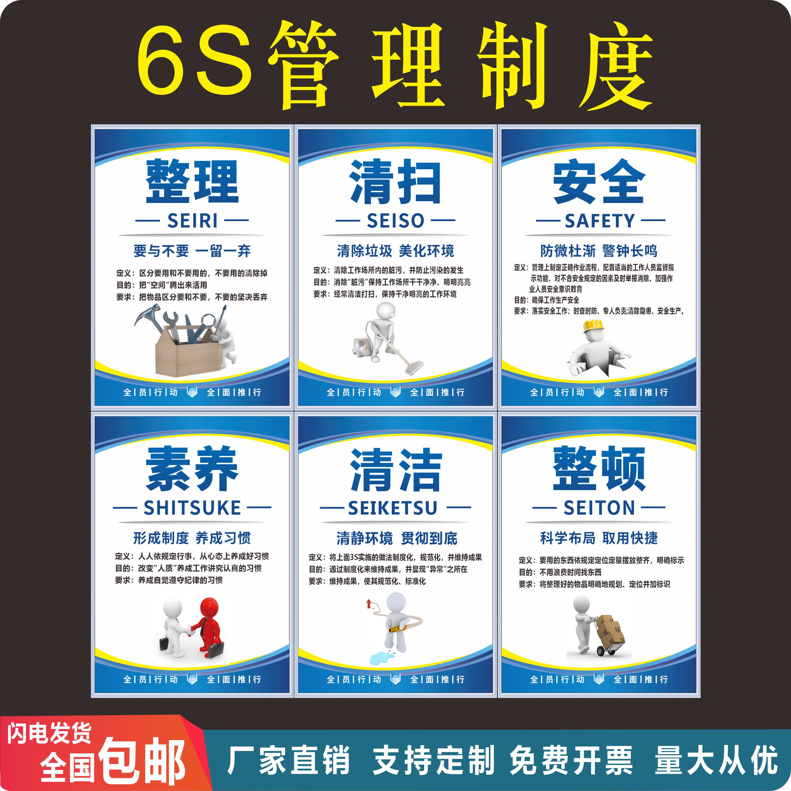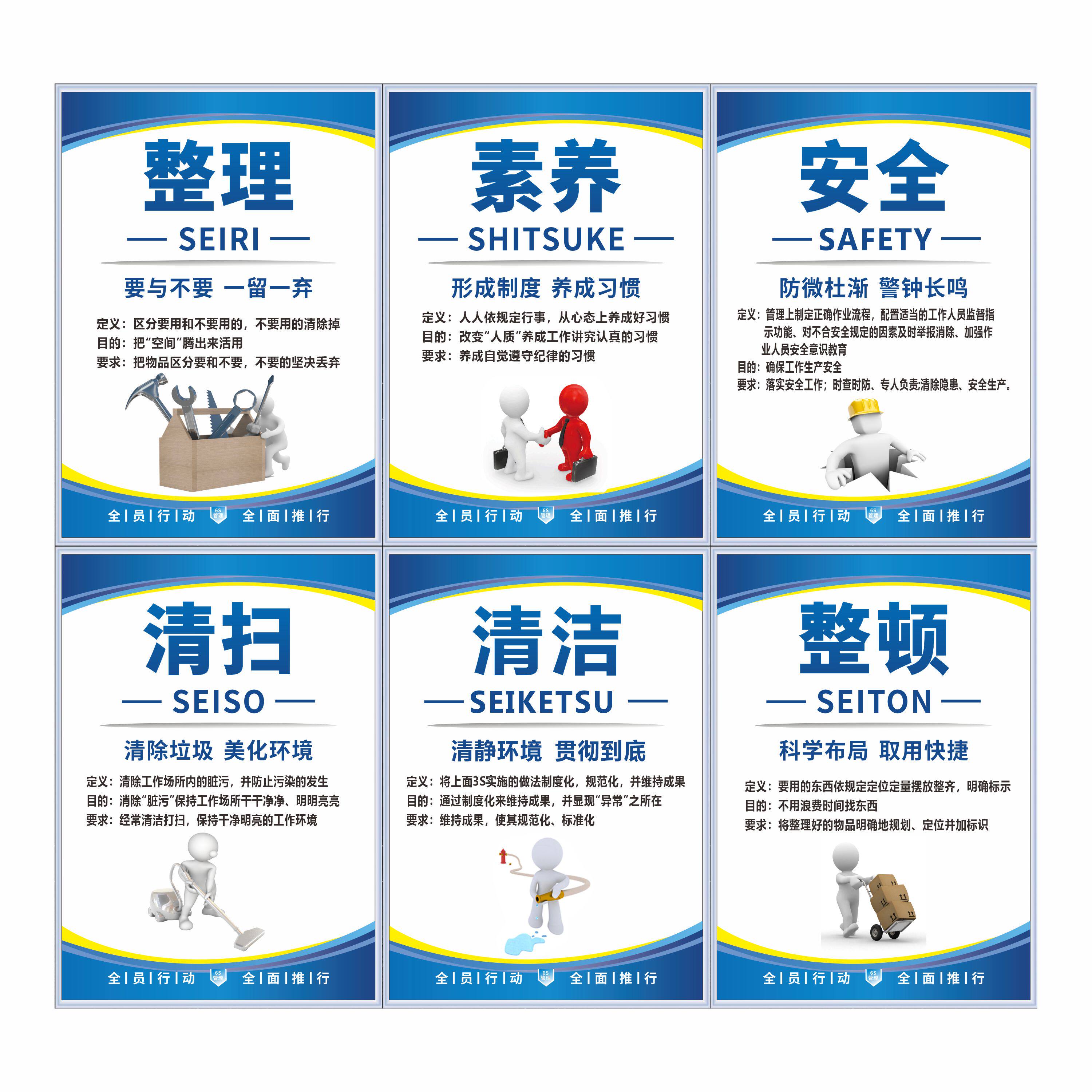 6S管理标识牌标语 企业文化宣传海报车间仓库展板挂图上墙办公室