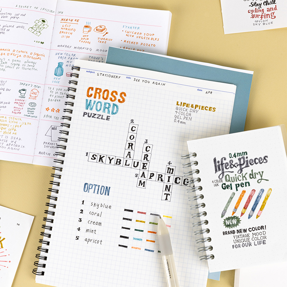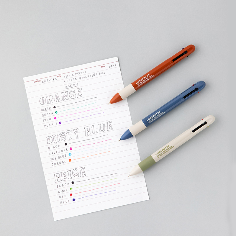 韩国Live work 四色圆珠笔速干彩色0.38mm中油笔4合1笔芯原子笔