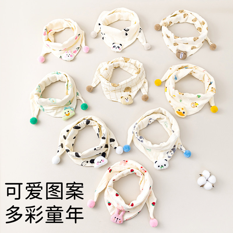 2025婴儿围巾春秋薄款纯棉纱布宝宝三角巾男女儿童防风保暖口水巾