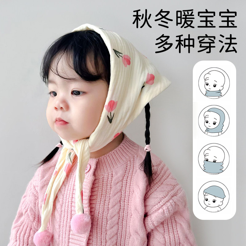 尼多熊2023宝宝围脖儿童围巾秋冬男女宝宝三角巾防风婴儿三角头巾