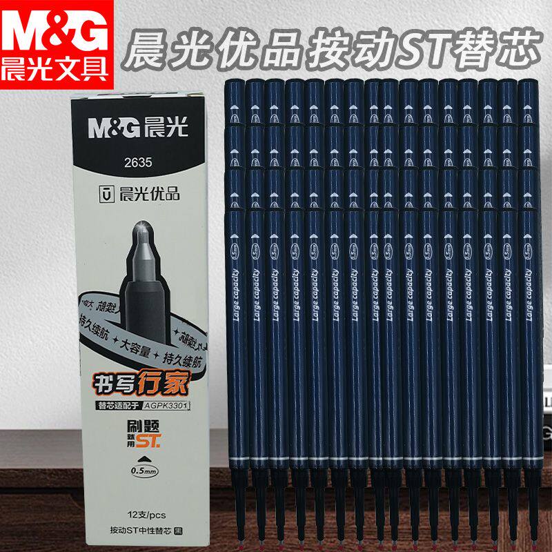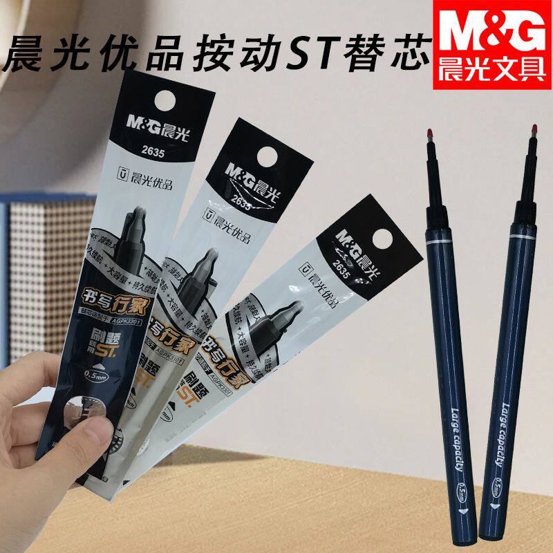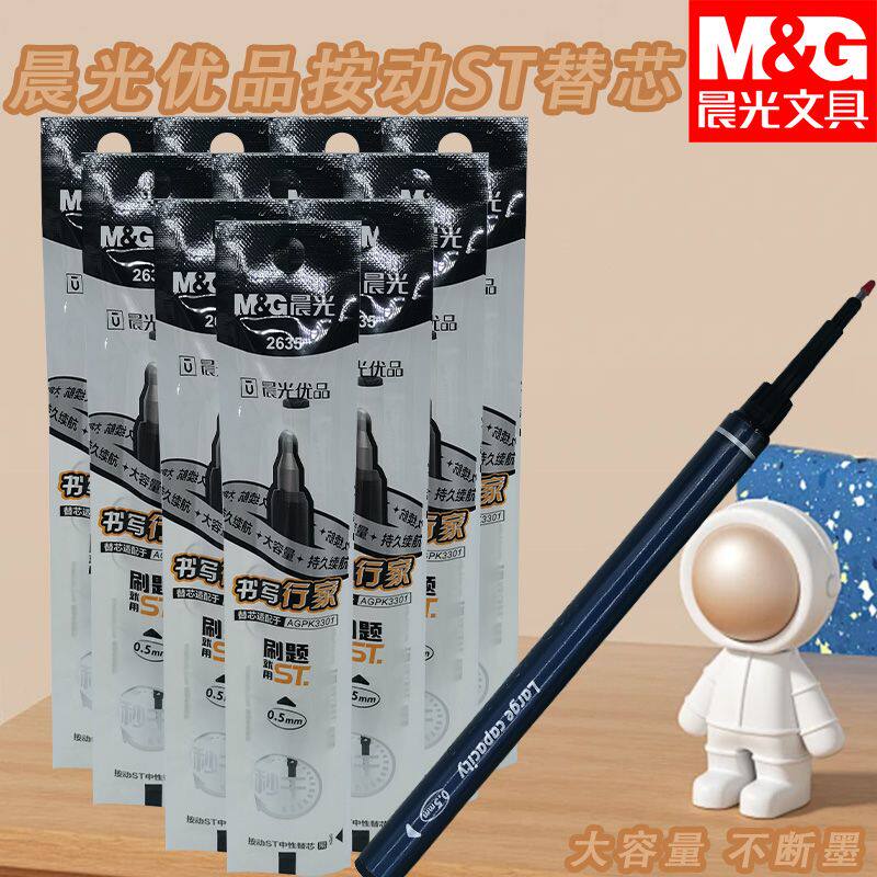 晨光2635优品按动考试顺滑中性笔学生ST替芯黑0.5大容量秒干笔芯