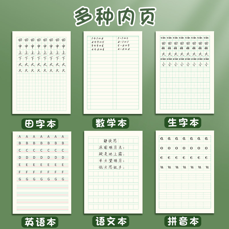 田字本幼儿园田字格练字本小学生一二年级册全国标准作业本写字本米黄眼护纸张学习文具牛皮课堂作业本子批发