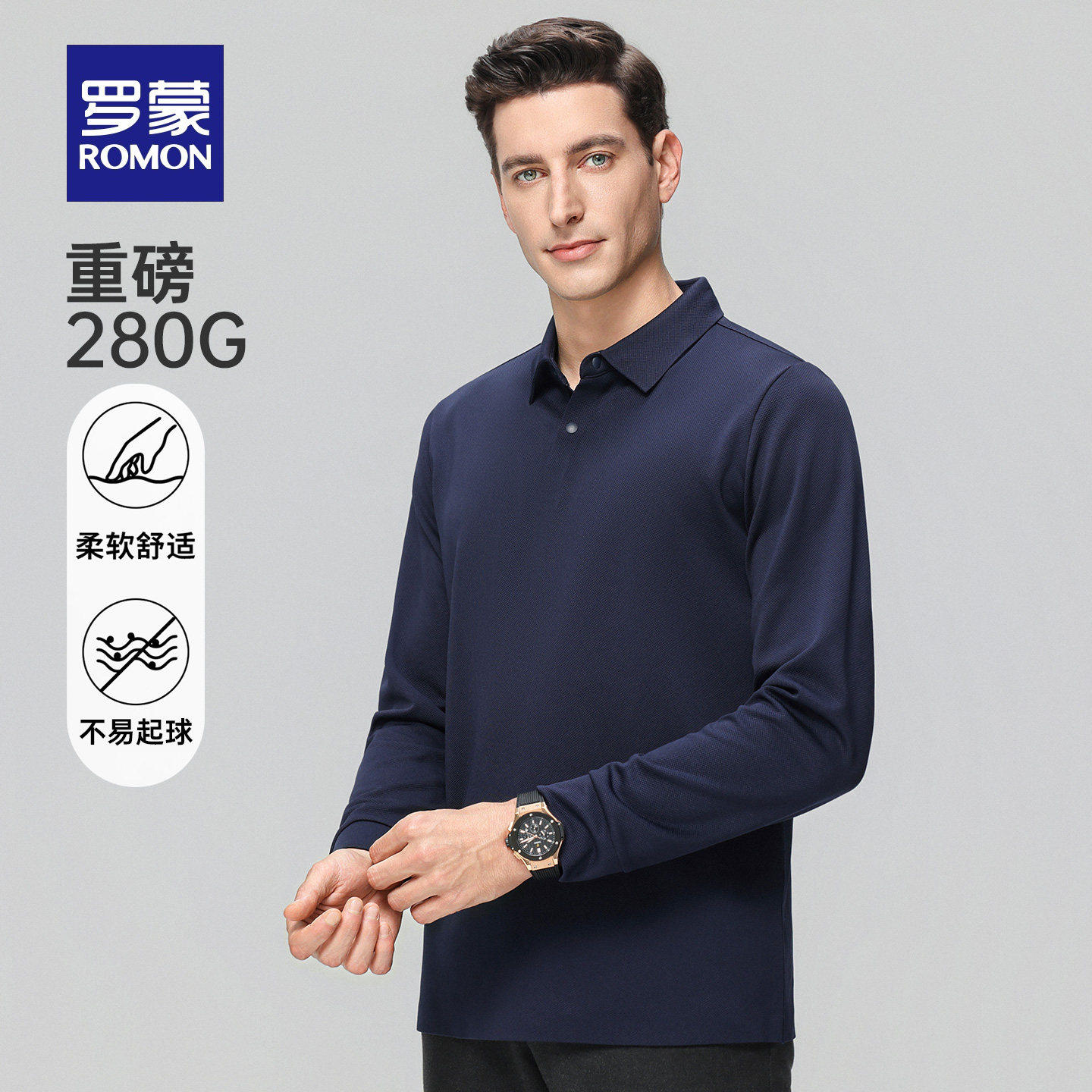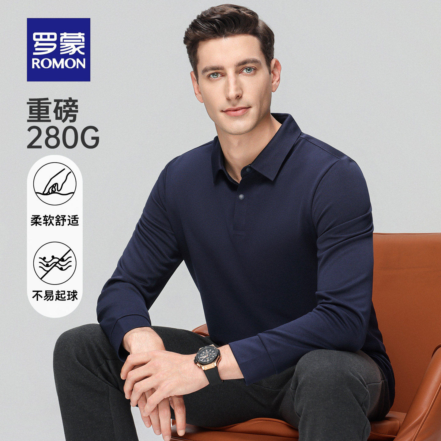 【重磅280克】罗蒙男士商务休闲长袖Polo衫2026春季新款打底T恤衫