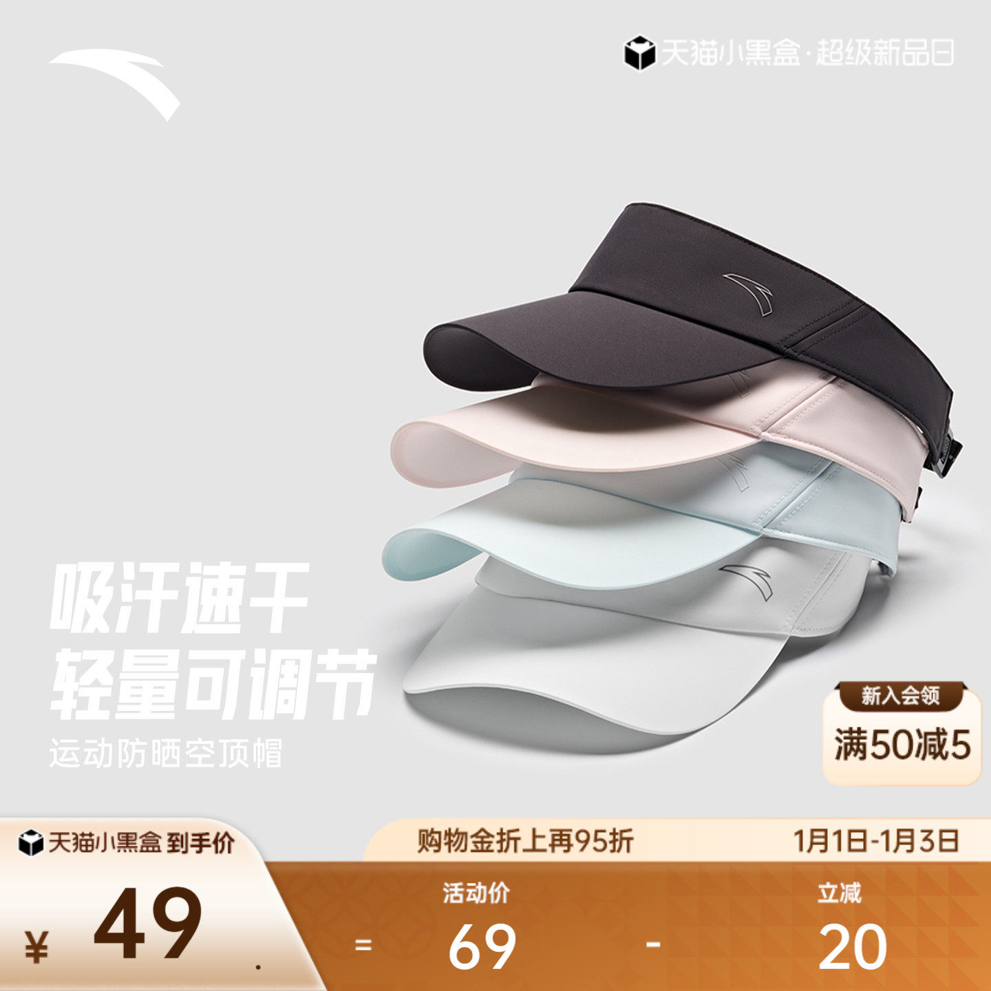 安踏运动帽户外速干轻质防晒帽跑步羽毛球网球骑行空顶帽遮阳帽子