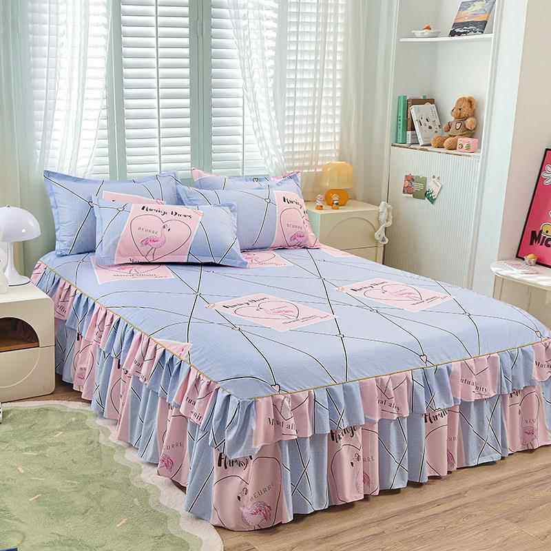 高档芦荟棉花边床裙三件套双层新款仿全棉床罩单双人床盖四季通用