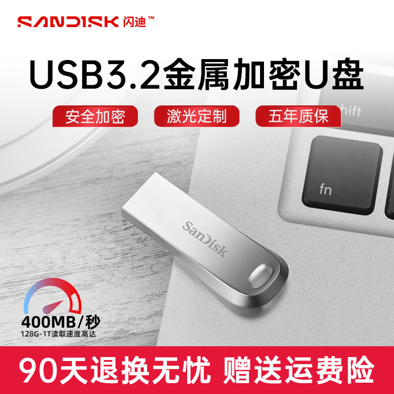 闪迪u盘256g高速usb3.2金属加密定制优盘cz74新升级读取400MB/S