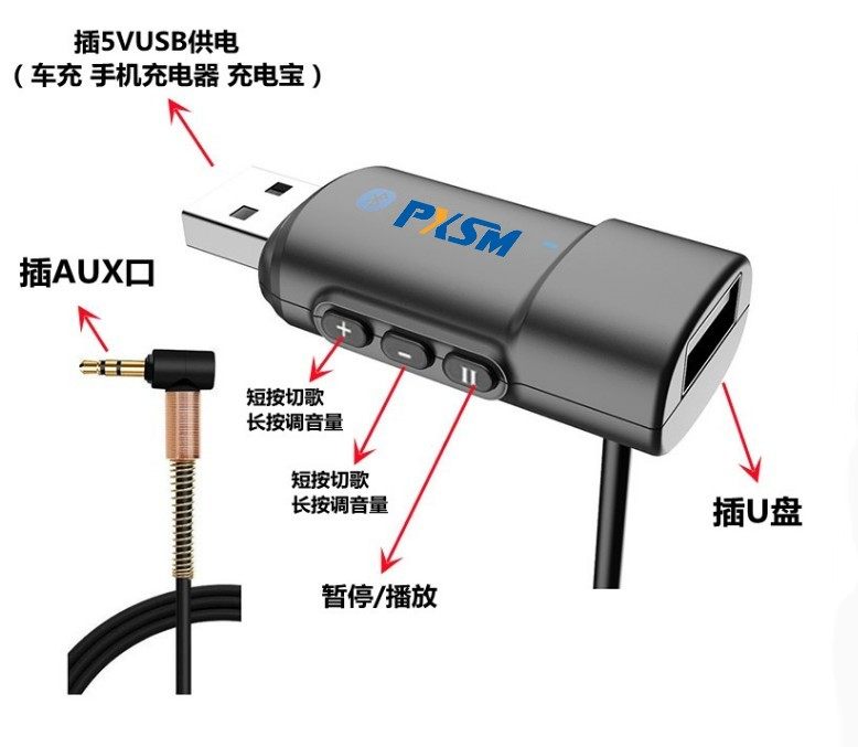 车载aux转插u盘音频线车用AUX3.5mm转USB母头转接线