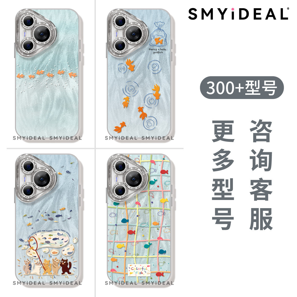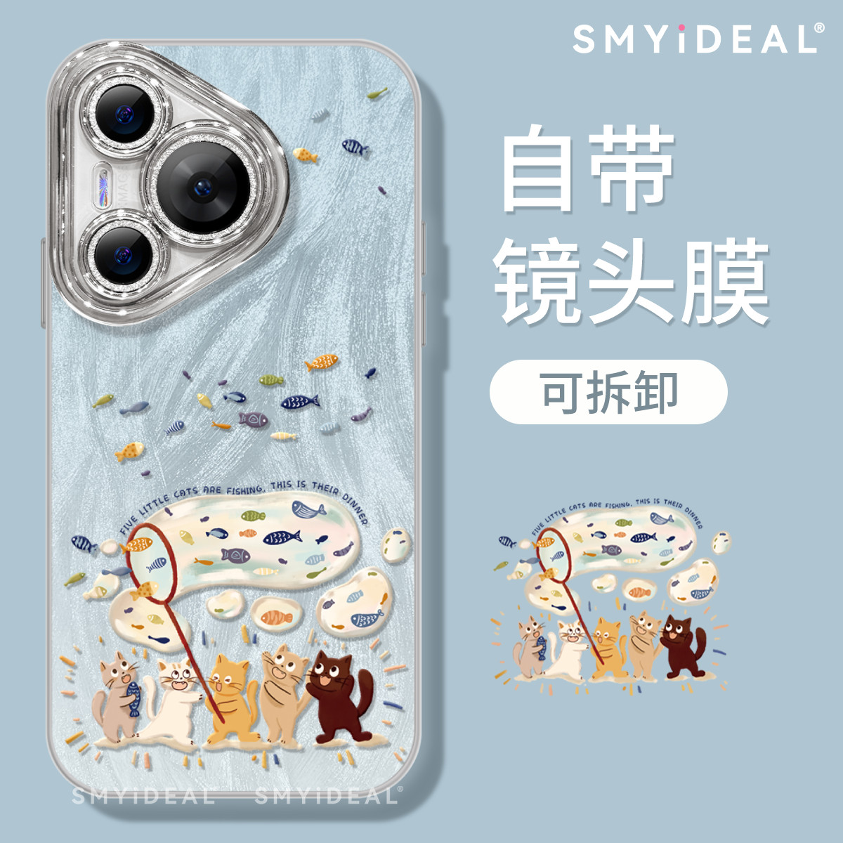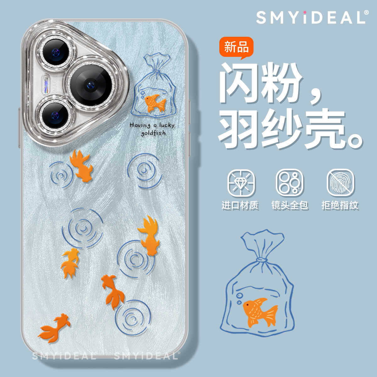 适用华为Pura70手机壳女款p70pro保护套新款ultra硅胶防摔50pro全包p40镜头膜p60pro+卡通p70个性金鱼art软外