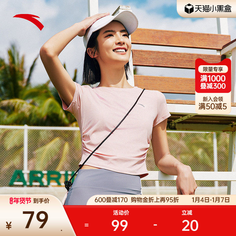 安踏超A短T丨辣妹正肩修身冰丝运动短袖女夏季欧若风网球跑步上衣