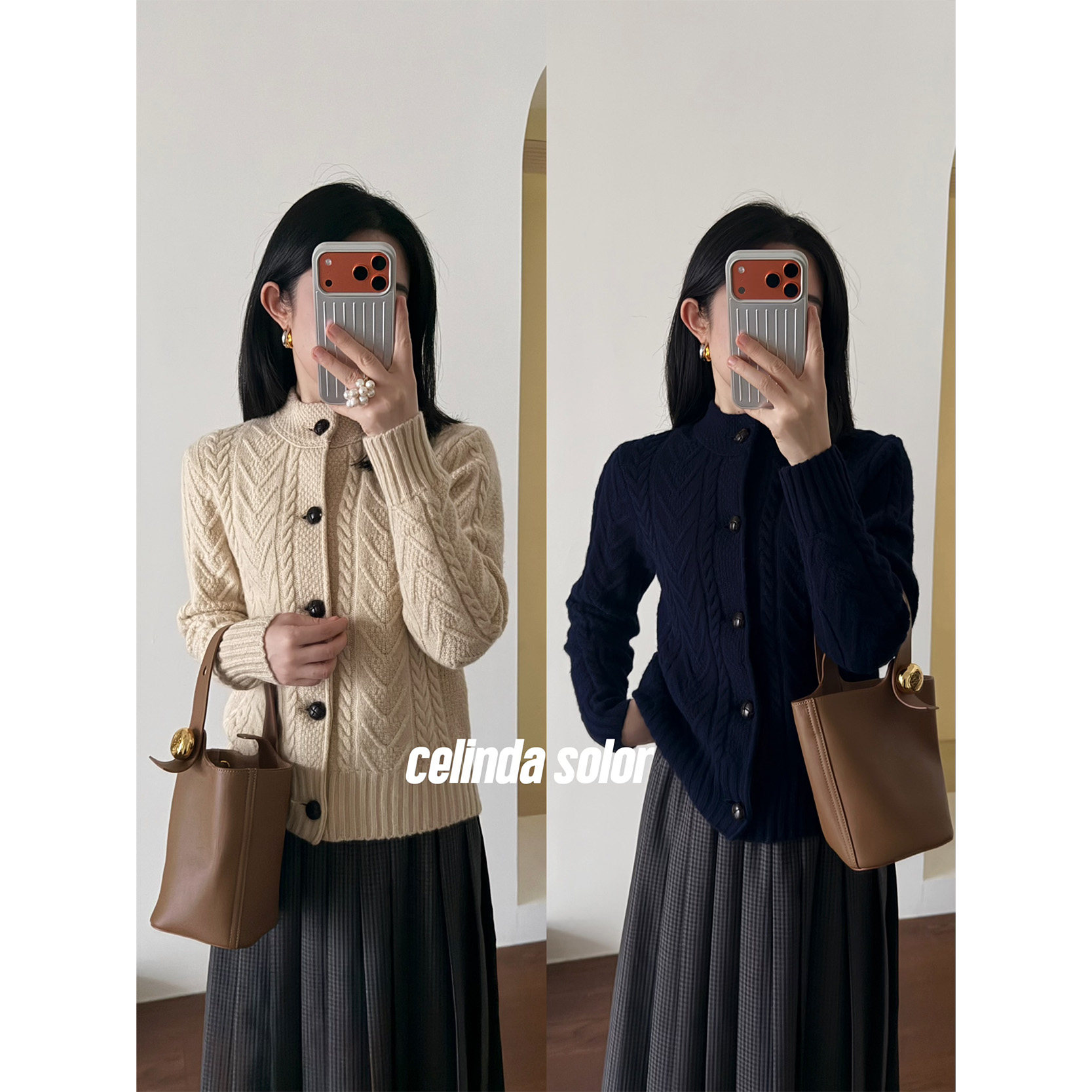 娇阳 尊贵老钱魅力!厚款大克重 100%美丽诺绞花开衫厚外套
