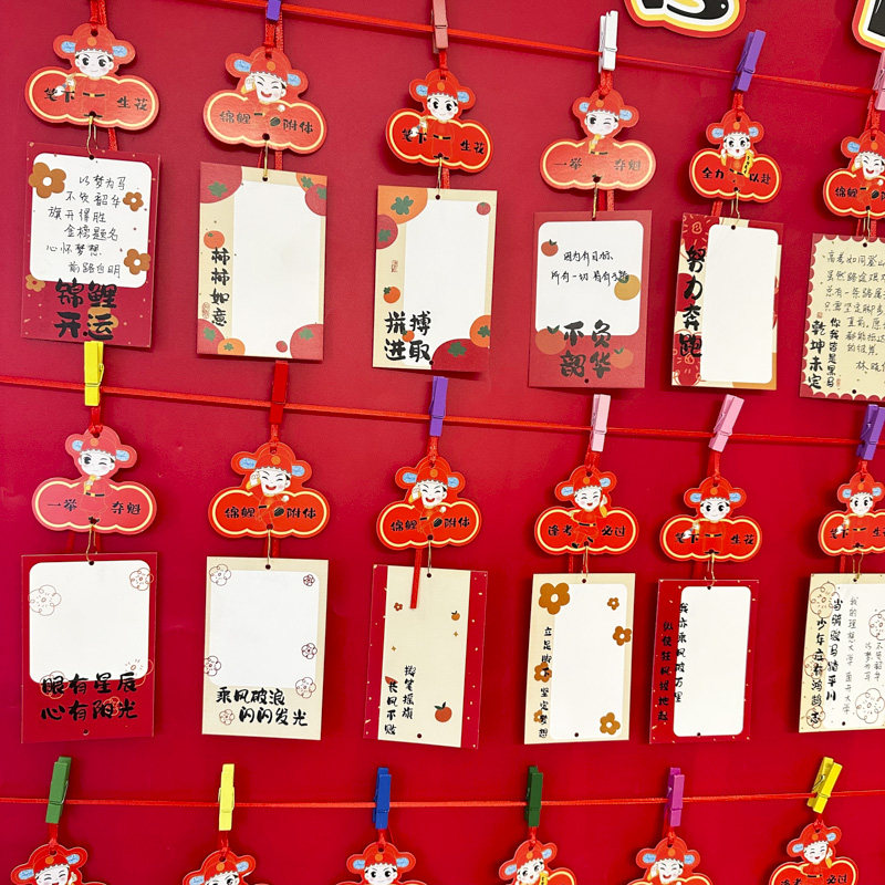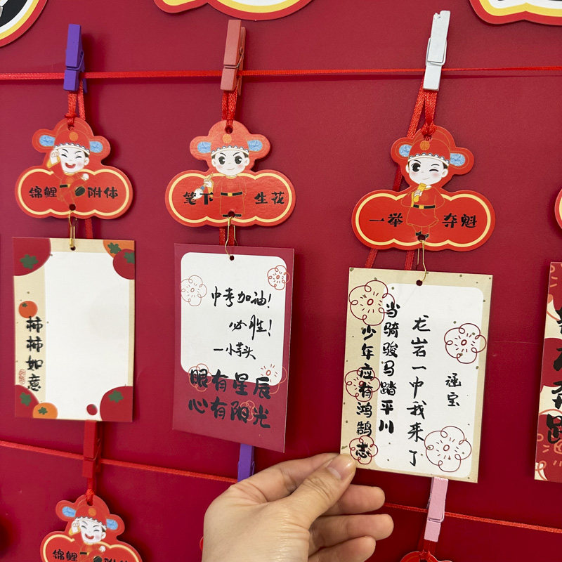 新学期初三中考百日誓师手写空白目标心愿墙班级仪式感布置学习开学装饰吊卡贺卡锦鲤高考励志礼物送高三学生