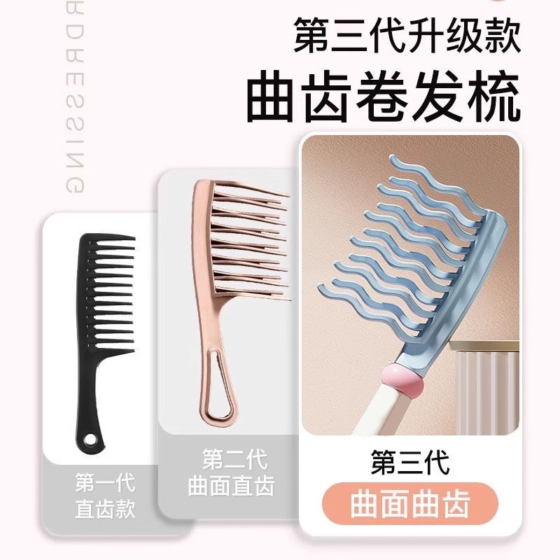 双排波浪齿卷发梳手柄头皮按摩梳蓬松梳理发店防静电卷发造型梳