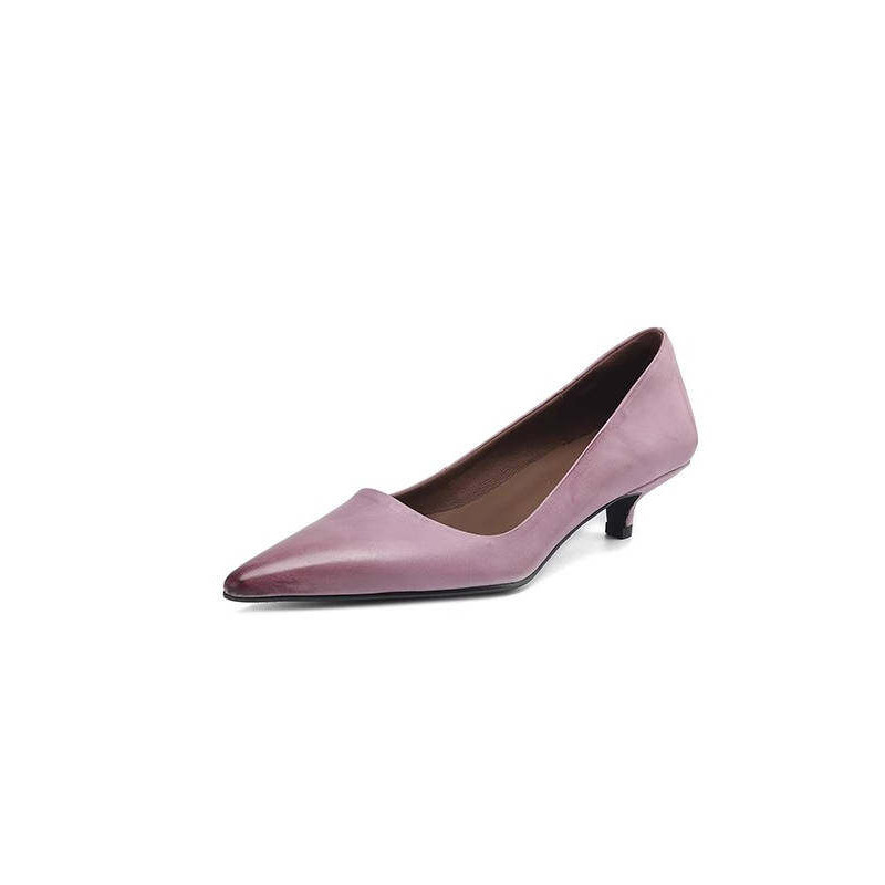 法式真皮春秋猫跟通勤工作鞋2026新款超火紫色尖头中跟单鞋女婚鞋