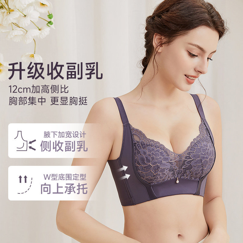 婷美小胸聚拢收副乳内衣女防下垂调整型提拉无钢圈性感蕾丝文胸女