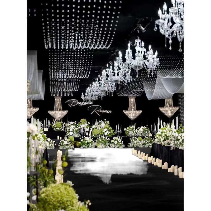 玄关水晶吊灯大堂婚庆吊电镀法式仪式亭装饰灯婚礼堂道具珠帘