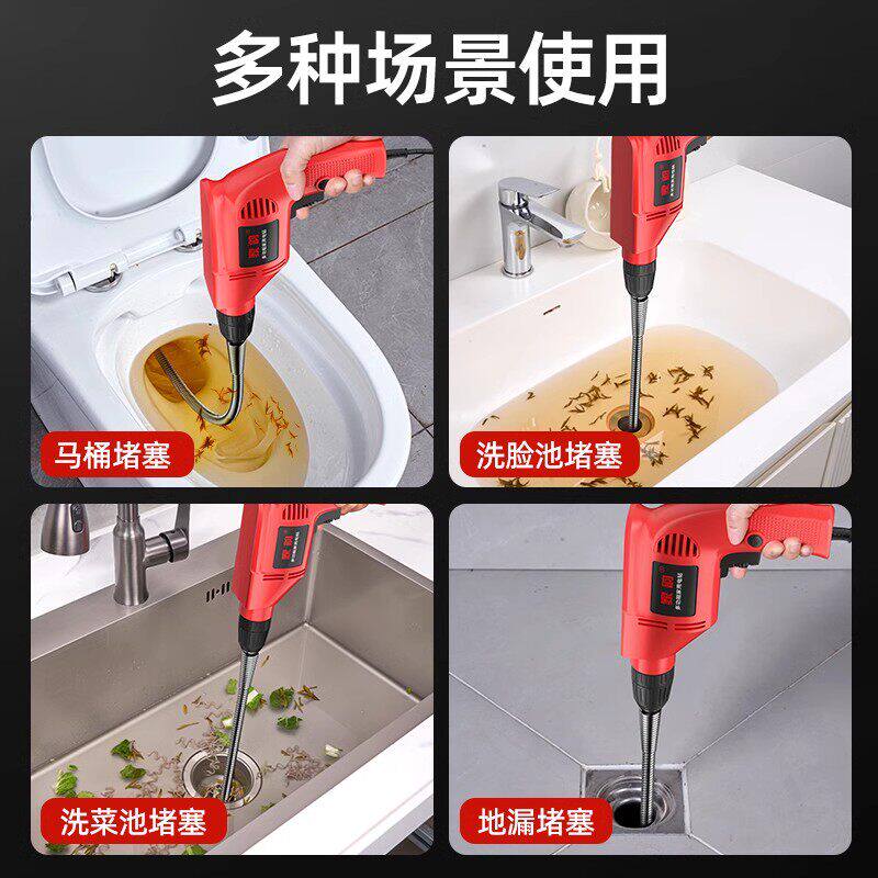 电钻弹簧管道疏通器下水道厨房厕所马桶疏通电钻疏通机专业堵塞